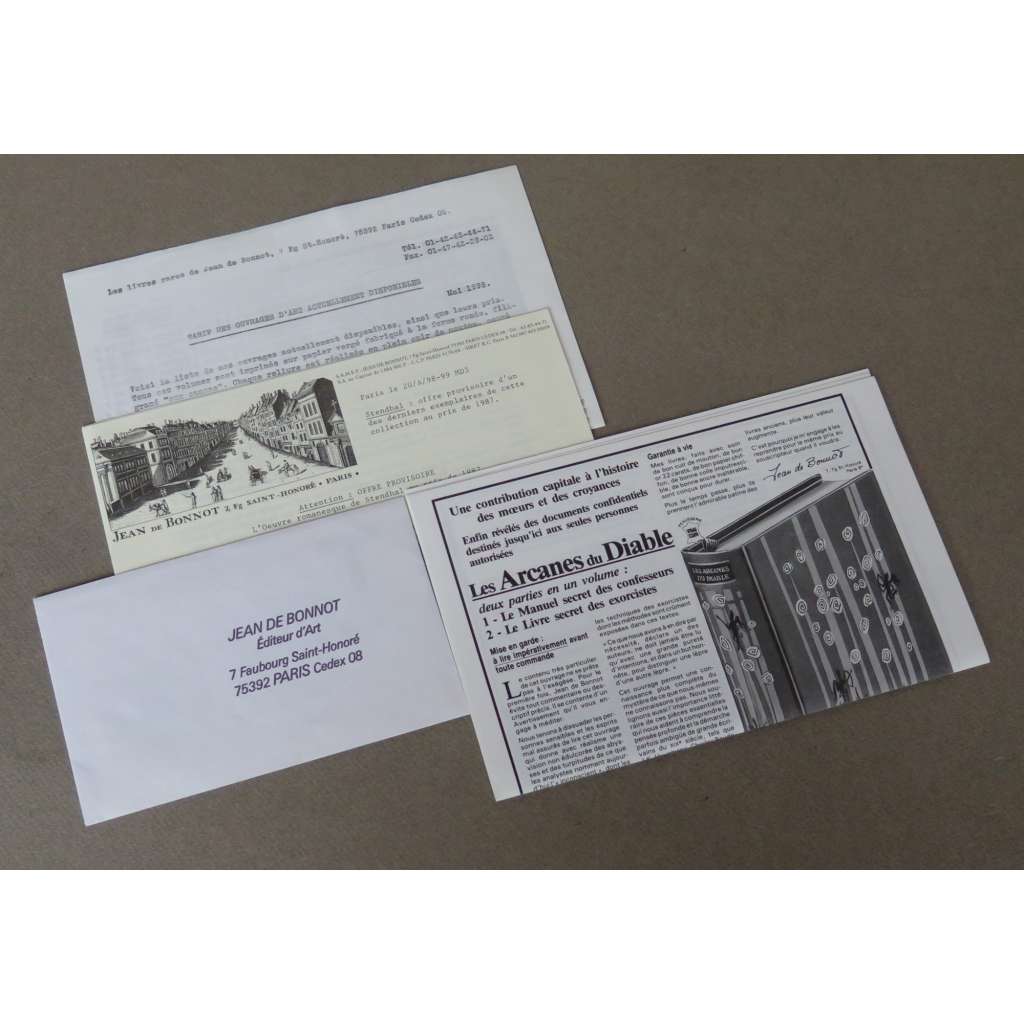 Celý titul a podtitul: "Les Arcanes du Diable, comprenant: Le Manuel secret de confesseurs par les R.R.P.P. Bouvier - Claret - Louvel, Le Livre secret des exorcistes d'après le Rituel romain de Paul V, L'Histoire des possessions démoniaques par l'Abbé Lecanu".