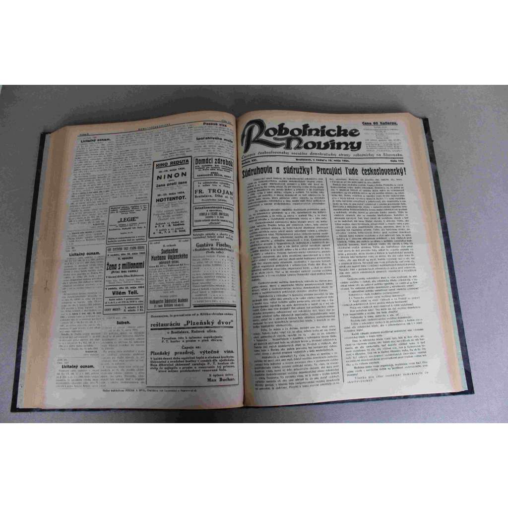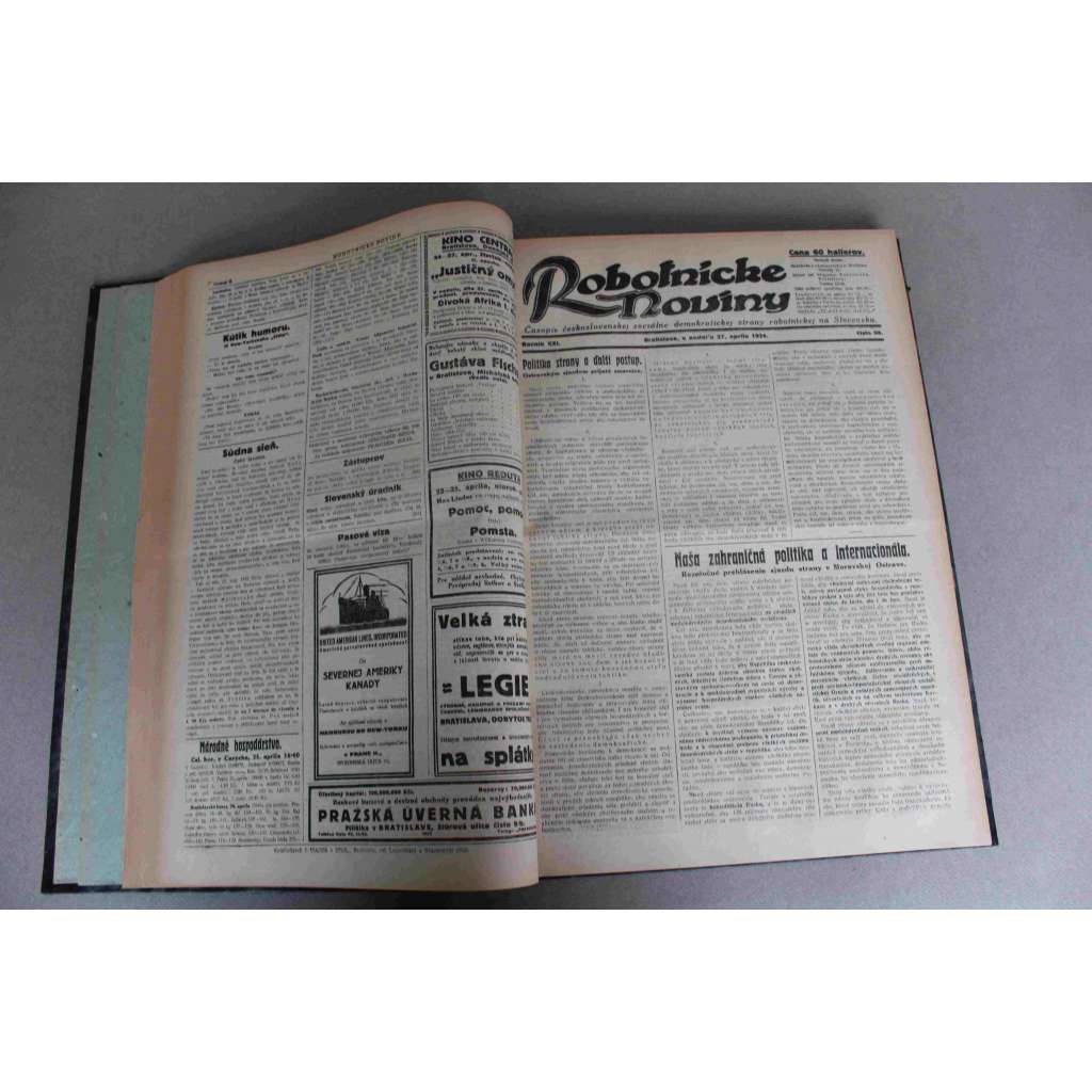 Robotnické noviny 1924, roč. XXI. (duben-červen) (noviny, deník, první republika, Slovensko, mj. Pohreb Vlastimila Tusara, Povodne na vých. Slovensku a Podkarpatskej Rusi, Imperializmus bolševíkov, Občianska vojna v Albanii)