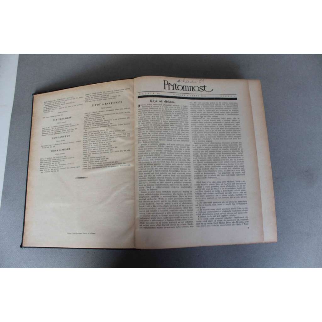 Přítomnost 1930, roč. VII. (časopis, týdeník, první republika, mj. E. Bass - První stavba SVU Mánes; Ch. Chaplin - Obhajoba němého filmu; J. Hejda - Rozprava o marxismu; F. Peroutka - Masarykova osobnost; Masaryk a umění)