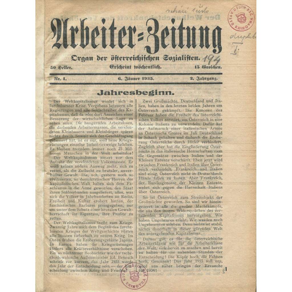 Arbeiter-Zeitung. Organ der österreichischen Sozialisten, roč. 2, 1935 [exil; Rakousko; sociální demokracie; časopis]