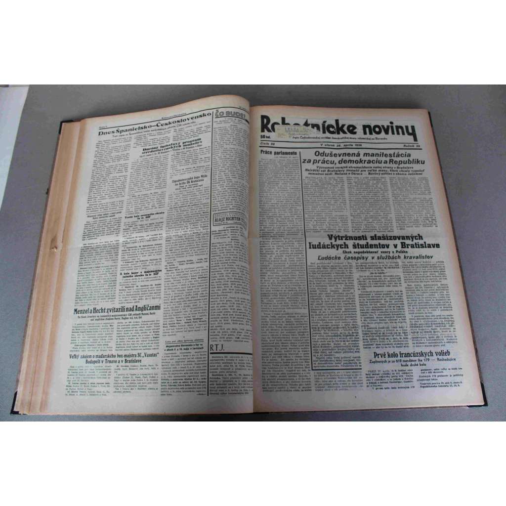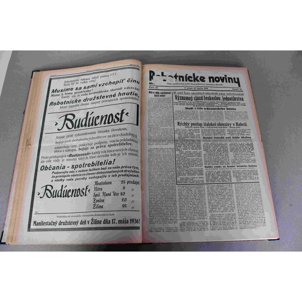 Robotnické noviny 1936, roč. 33 (duben-červen) (noviny, deník, první republika, Slovensko, mj. HItlerovci nakradli si na 3 milony hlasov, Zákrok Malej dohody vo Viedni, Habešania úspešně hája Addis Abebu, Mussolini, Prezident republiky na Morave)