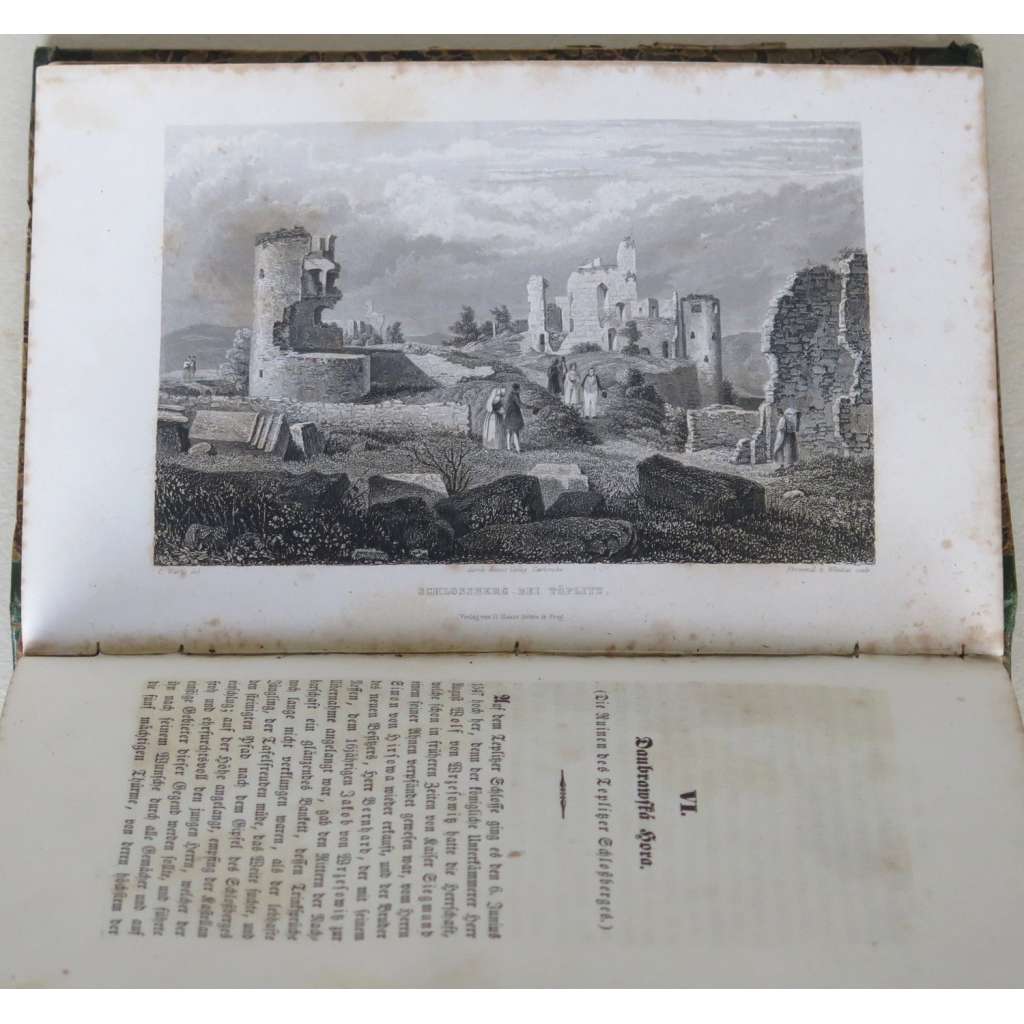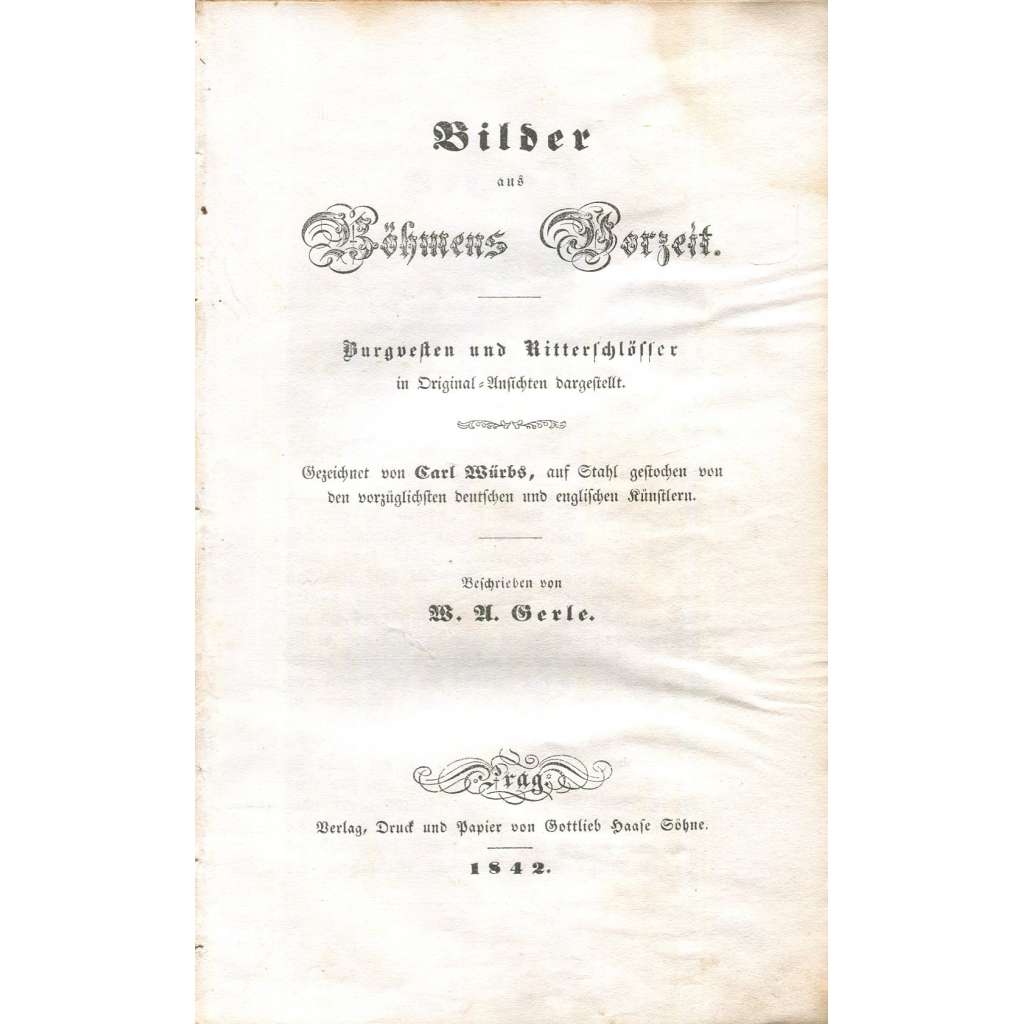 Vydání: Prag: Verlag, Druck und Papier von Gottlieb Haase Söhne 1842, 20 tabulí s vedutami hradů a zámků podle kreseb Karla Würbse (1807-1876), text od Wolfganga Adolfa Gerleho (1781-1846); obsahuje Frýdlant, Český Šternberk, Kokořín, Jestřebí, Trosky, Doubravka/Teplice, Zvíkov, Střekov, Křivoklát, Bezděz, Rabií, Karlštejn, Pražský hrad, Andělská Hora, Orlík, Loket, Cheb, Krupka, Žebrá, Točník. /// polokožená vazba se zlaceným titulem, IV+464+[2] stran, 20 tabulí, 8° (14.5 x 22 cm)