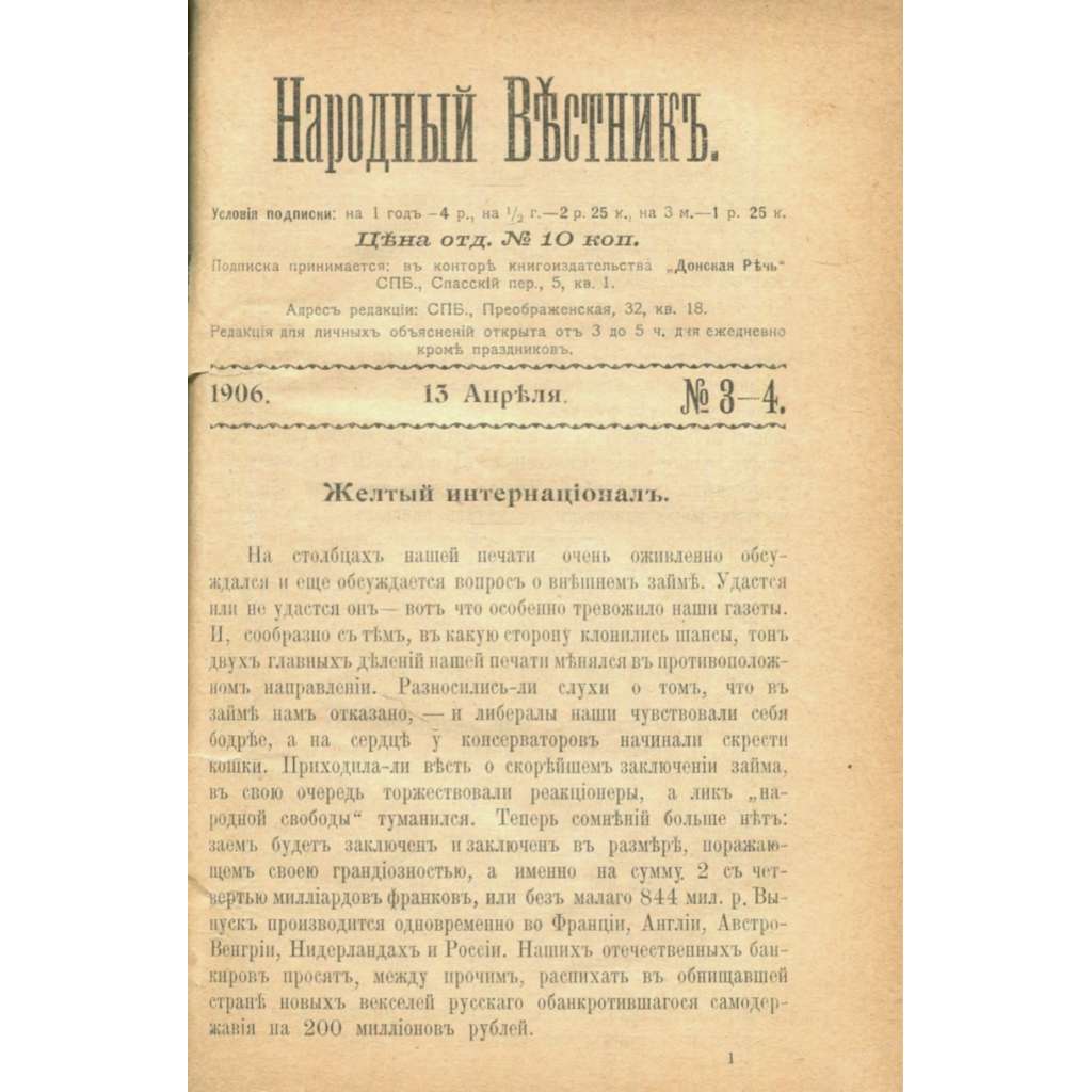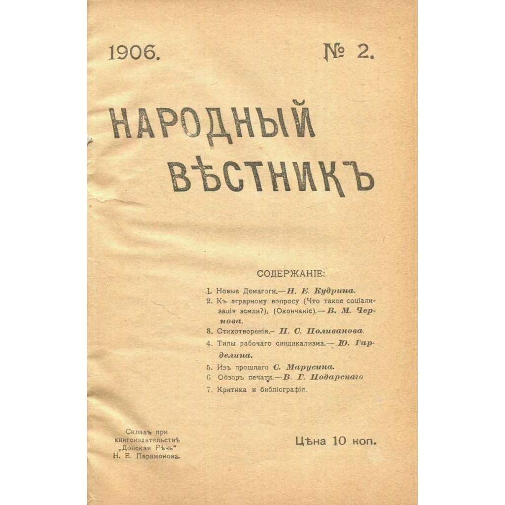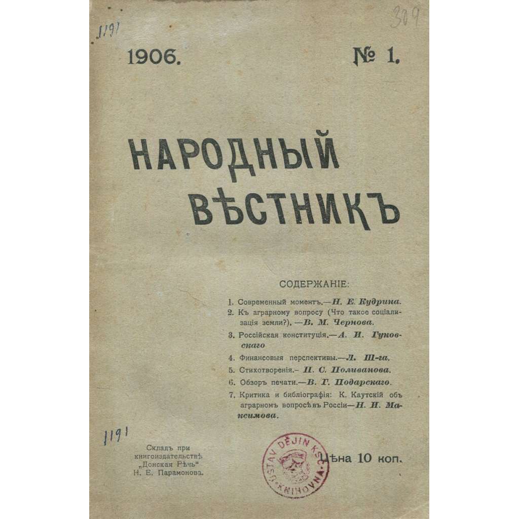 Narodnyj vestnik, 1906, č. 1, 2, 3-4 [eseři; Strana socialistů revolucionářů; Rusko; časopis; Народный вестник]
