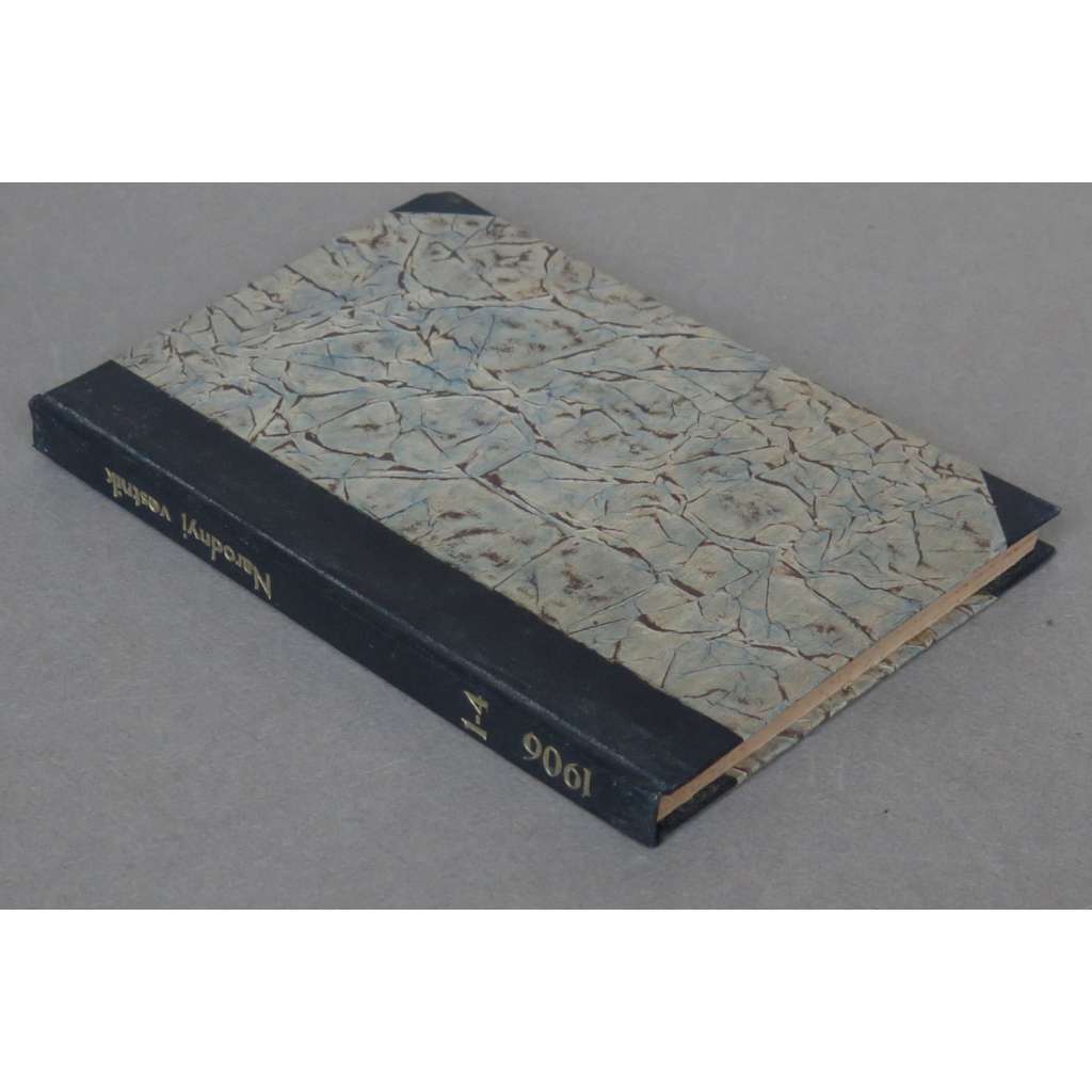 Poloplátěná pevná vazba; bývalý knihovní exemplář; vevázána je jen původní obálka prvního čísla.
