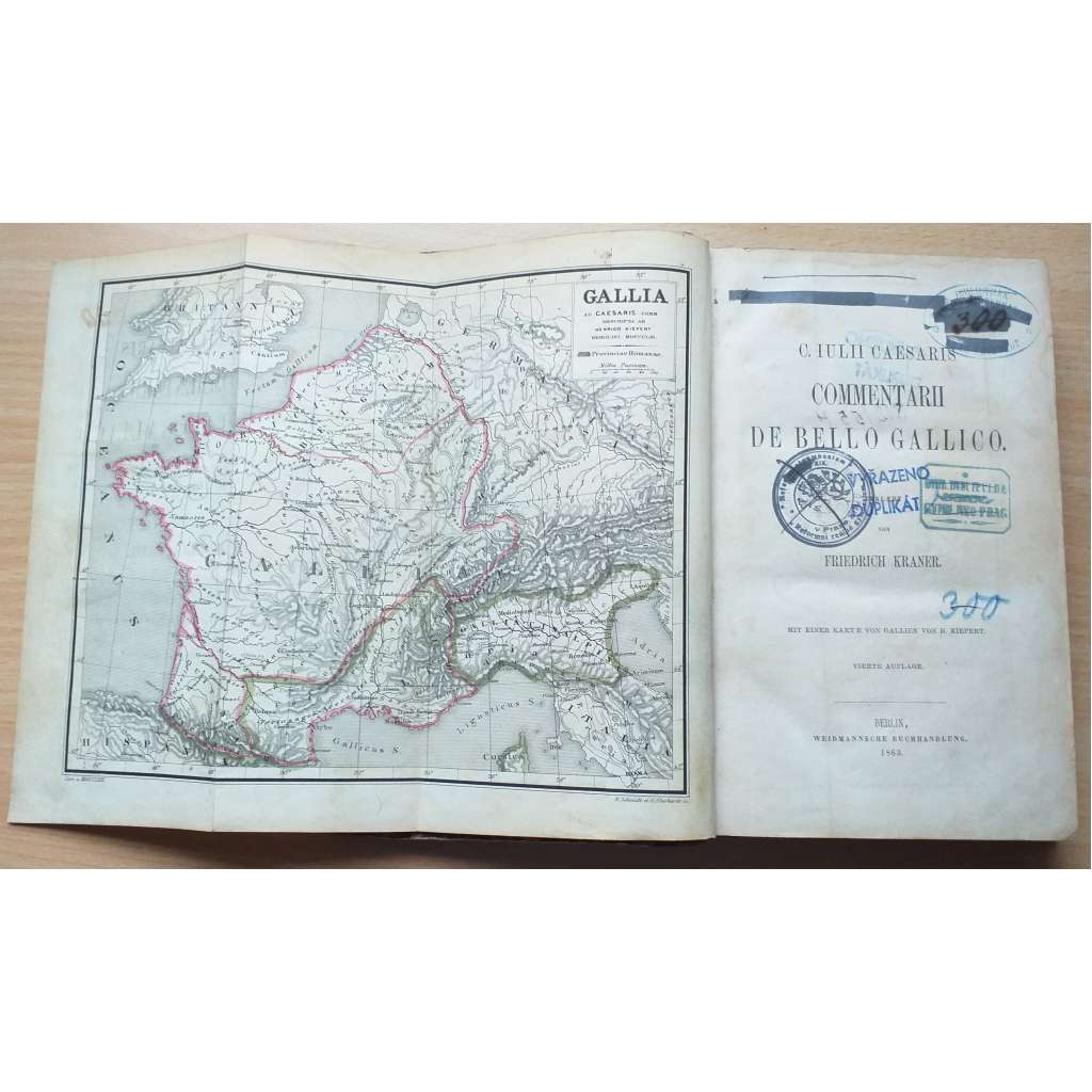 S mapkou Galie od H. Kieperta, 4. vydání. Antika, Římská říše, Caesarovy zprávy o galských válkách, latinsky s německými poznámkami