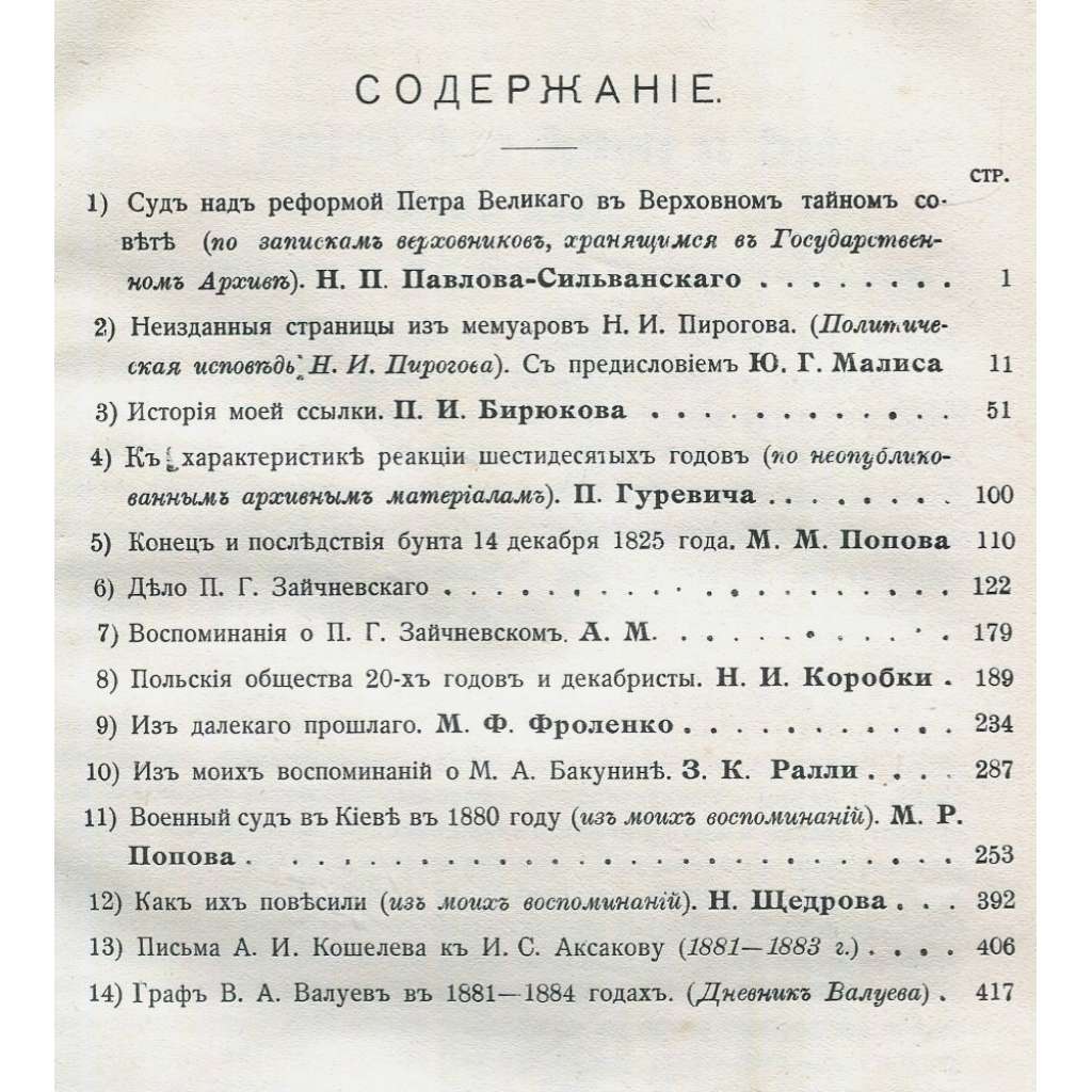 Sborník historických studií, který navázal na zakázaný historický časopis "Byloje" a byl distribuován jeho předplatitelům. Viz naskenovaný obsah. Na sborník poté navázal další časopis "Minuvšie gody".
