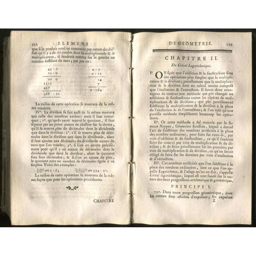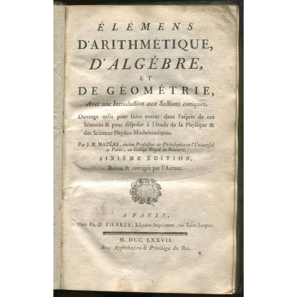 Élémens d'Arithmétique, d'Algébre, et de Géométrie, Avec une Introduction aux Sections coniques. ... [matematika, geometrie, učebnice, staré tisky]
