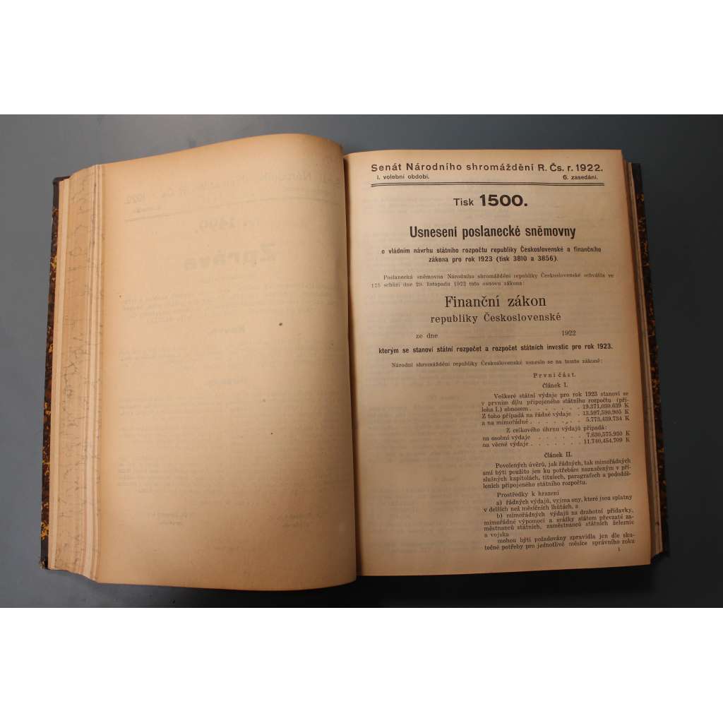 Tisky k těsnopiseckým zprávám o schůzích senátu (senát, první republika, tisky, zákony; polokožená vazba - vazba kůže)