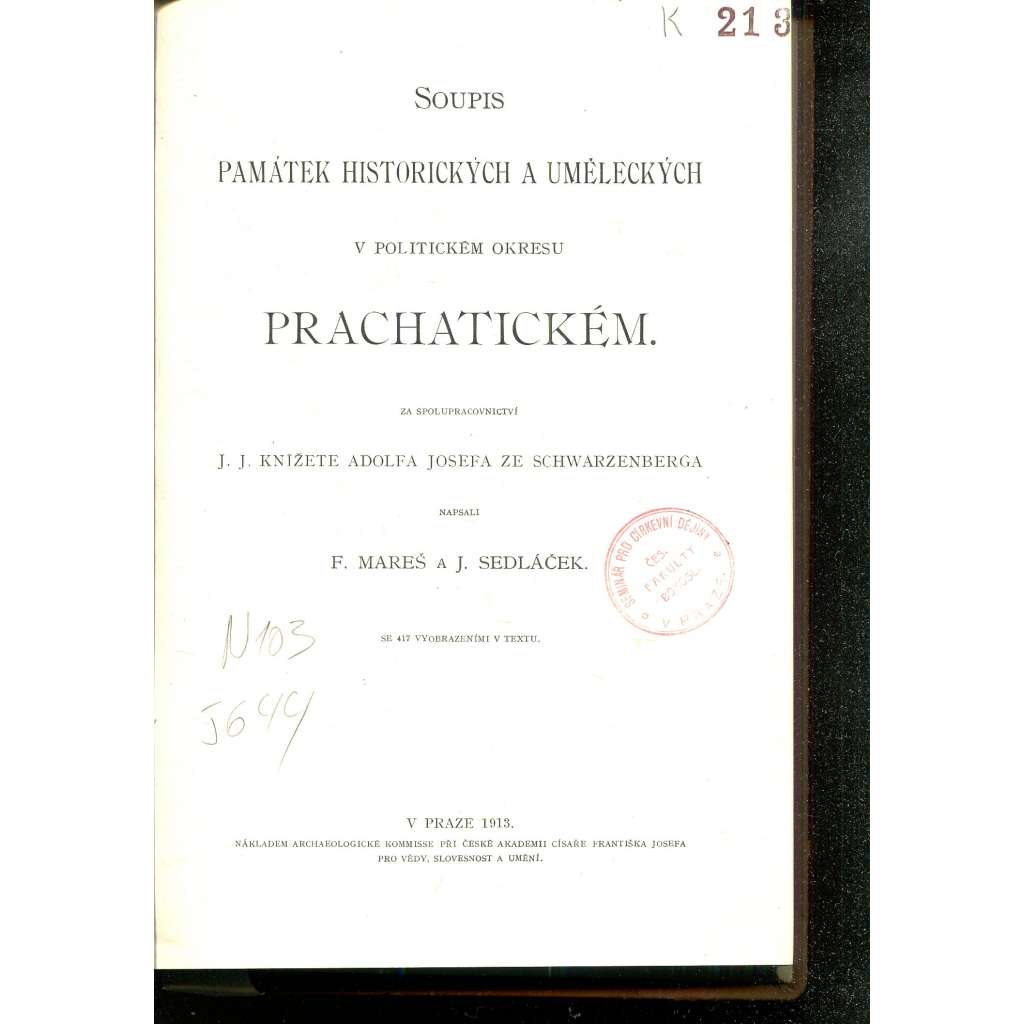 Soupis památek historických a uměleckých (Prachatice) v politickém okresu Prachatickém (okres Prachatický - Šumava) [zámky, kostely, stavby, křesťanské církevní umění, starožitnosti, obrazy]
