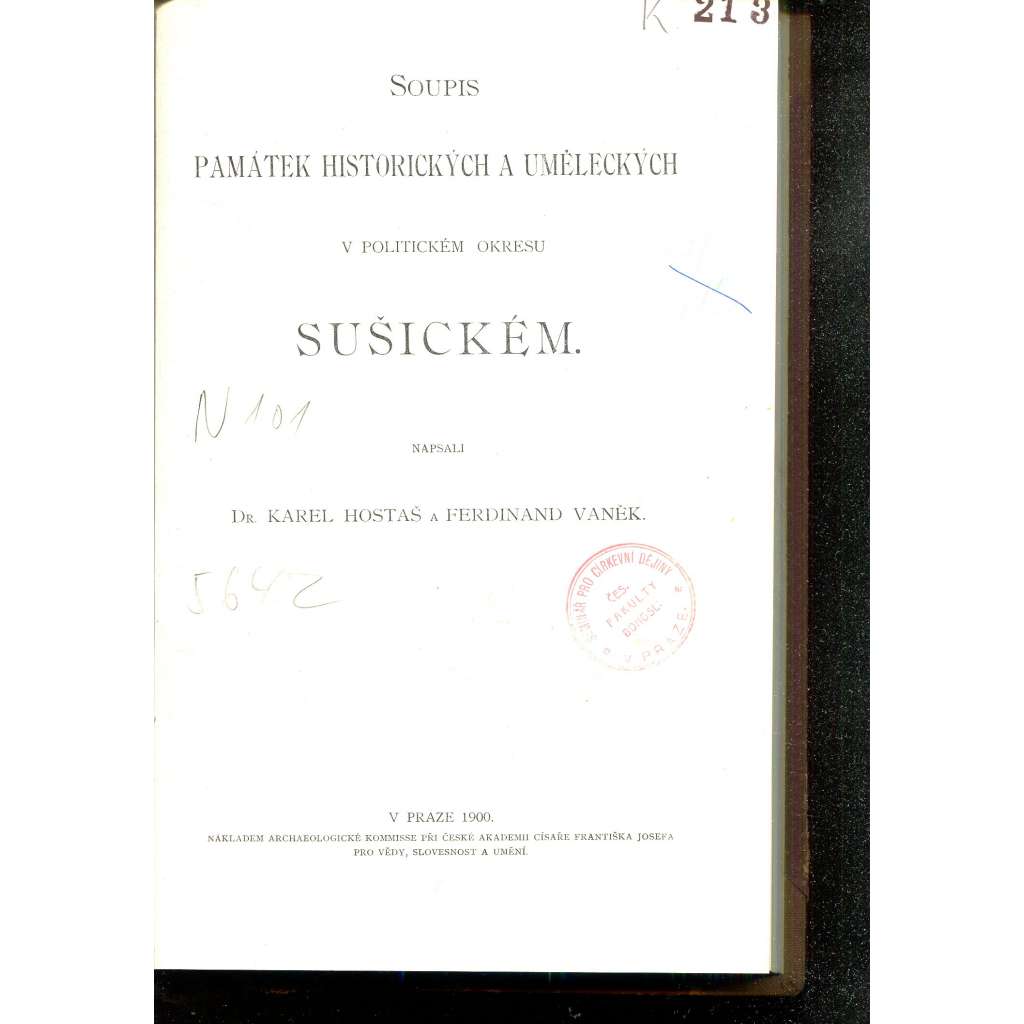 Soupis památek historických a uměleckých (Sušice) v okresu sušickém (politický okres Sušický; dnes v okr. Klatovy) [zámky, kostely, stavby, křesťanské církevní umění, starožitnosti, obrazy]