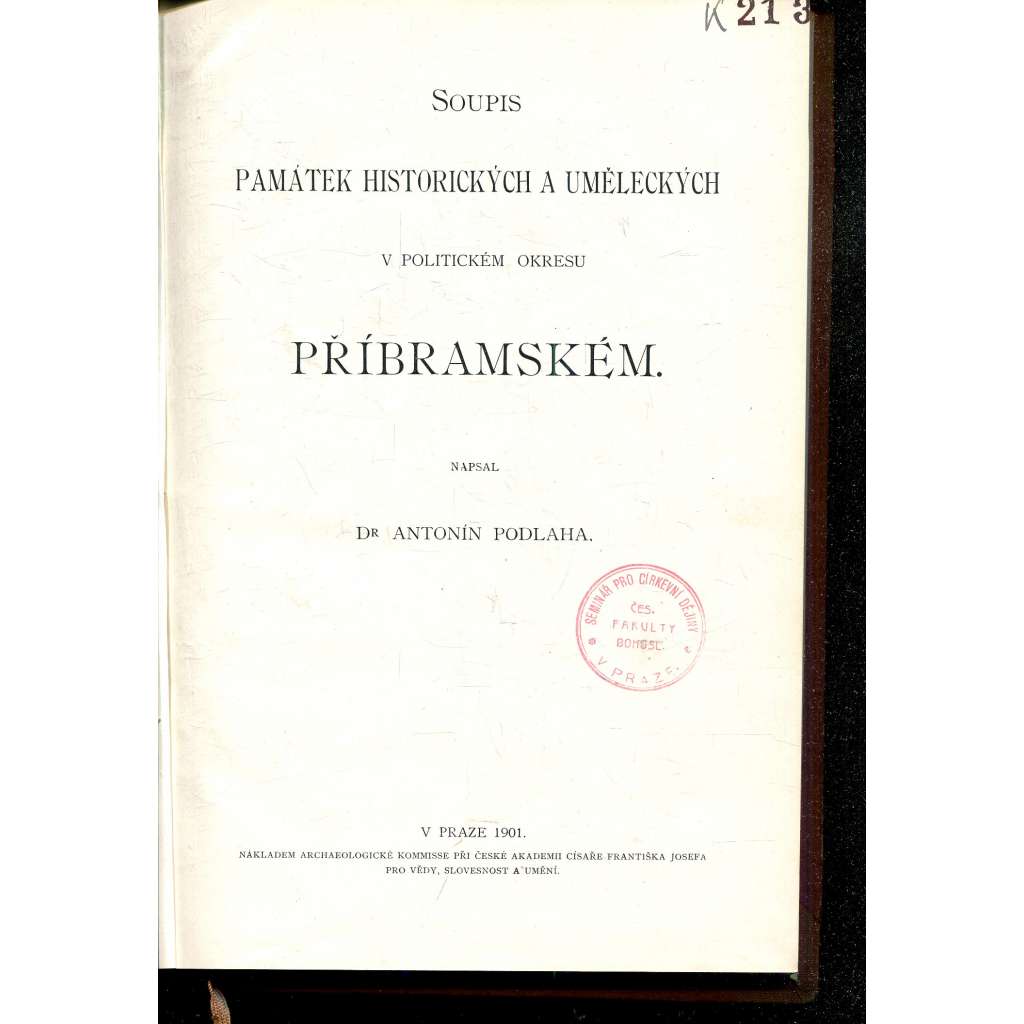 Soupis památek historických a uměleckých (Příbram) v okresu příbramském (okres příbramský)[zámky, kostely, stavby, křesťanské církevní umění, starožitnosti, obrazy]