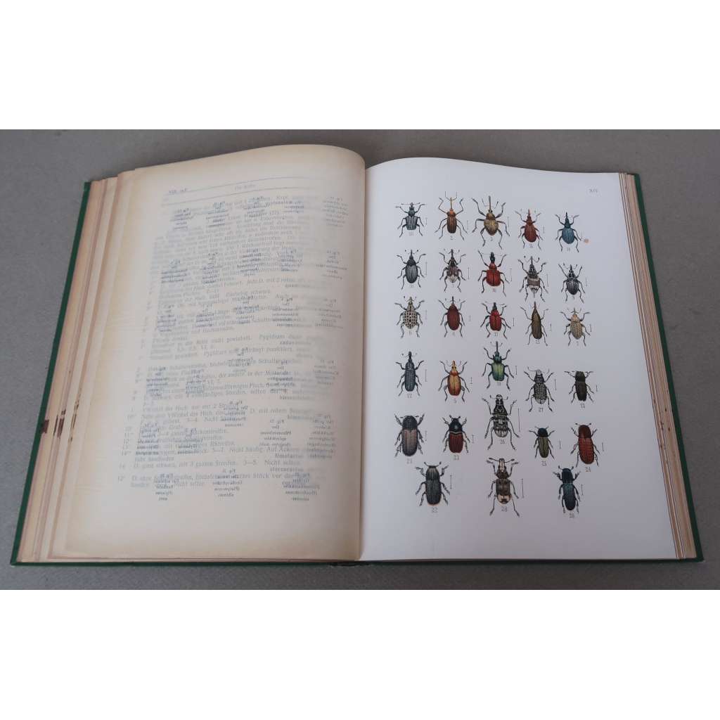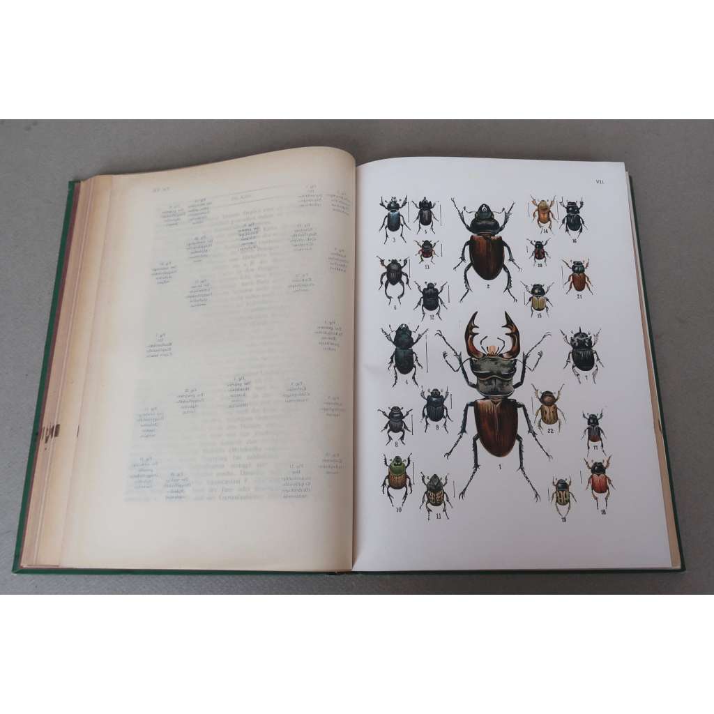 Původní celoplátěná vazba se zlacením, s barevnou ořízkou, VIII+190 stran s 8 vyobrazeními v textu a 20 barevnými tabulemi (komplet), každá tabule je chráněná průhlednou papírovou krytkou, na které jsou vytištěny německé a latinské názvy na tabuli zobrazených brouků, 4° (18 x 25 cm).