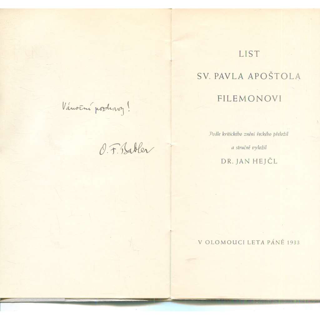 List sv. Pavla apoštola Filemonovi (podpis Otto F. Babler)