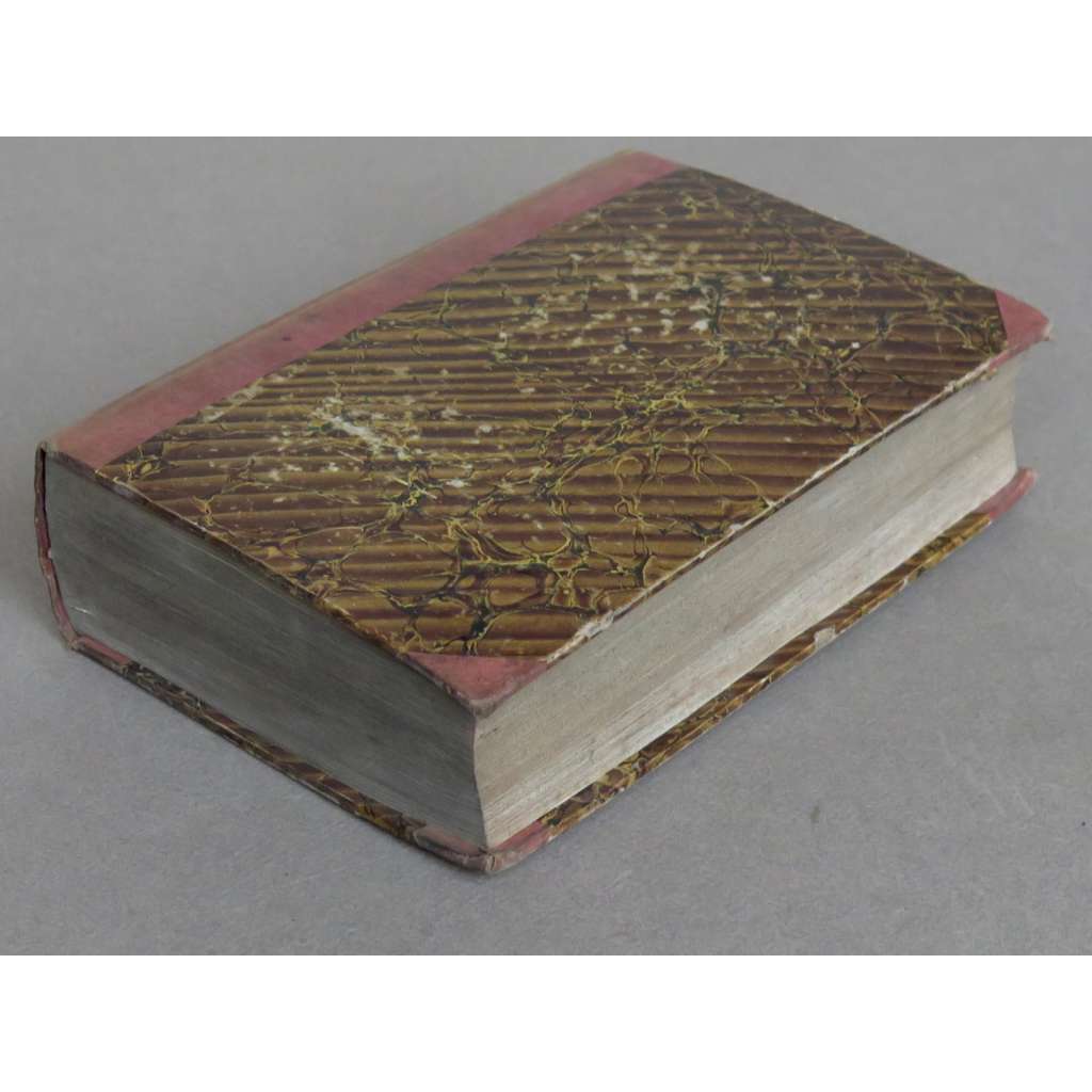 Dobová poloplátěná vazba se zlacením a pokryvem desek z mramorovaného papíru.
