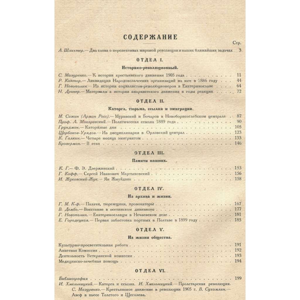 Jedno dvojčíslo a jedno číslo sovětského časopisu věnovanému revolučním dějinám Ruska, Ukrajiny atd.: v průběžném číslování jde celkově o čísla ("knigy") 5/6 a 7 (tj. čísla 2/3 a 4 z roku 1926). Viz naskenované obsahy. Vzácné, malonákladové periodikum.