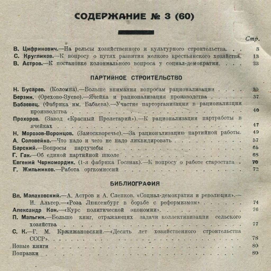 Jedno číslo sovětského časopisu pro moskevské členy bolševické strany; zaměřen byl na teorii, politické otázky, vzdělávání členů atd. Viz naskenovaný obsah.