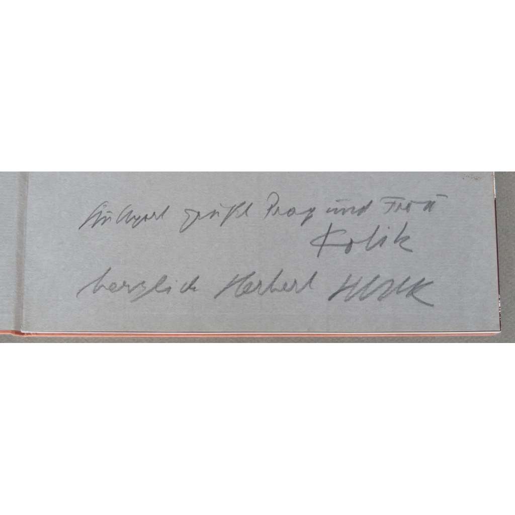 Na přední předsádce je podepsané věnování Otto Herberta Hajeka významnému českému umělci Janu Kotíkovi.