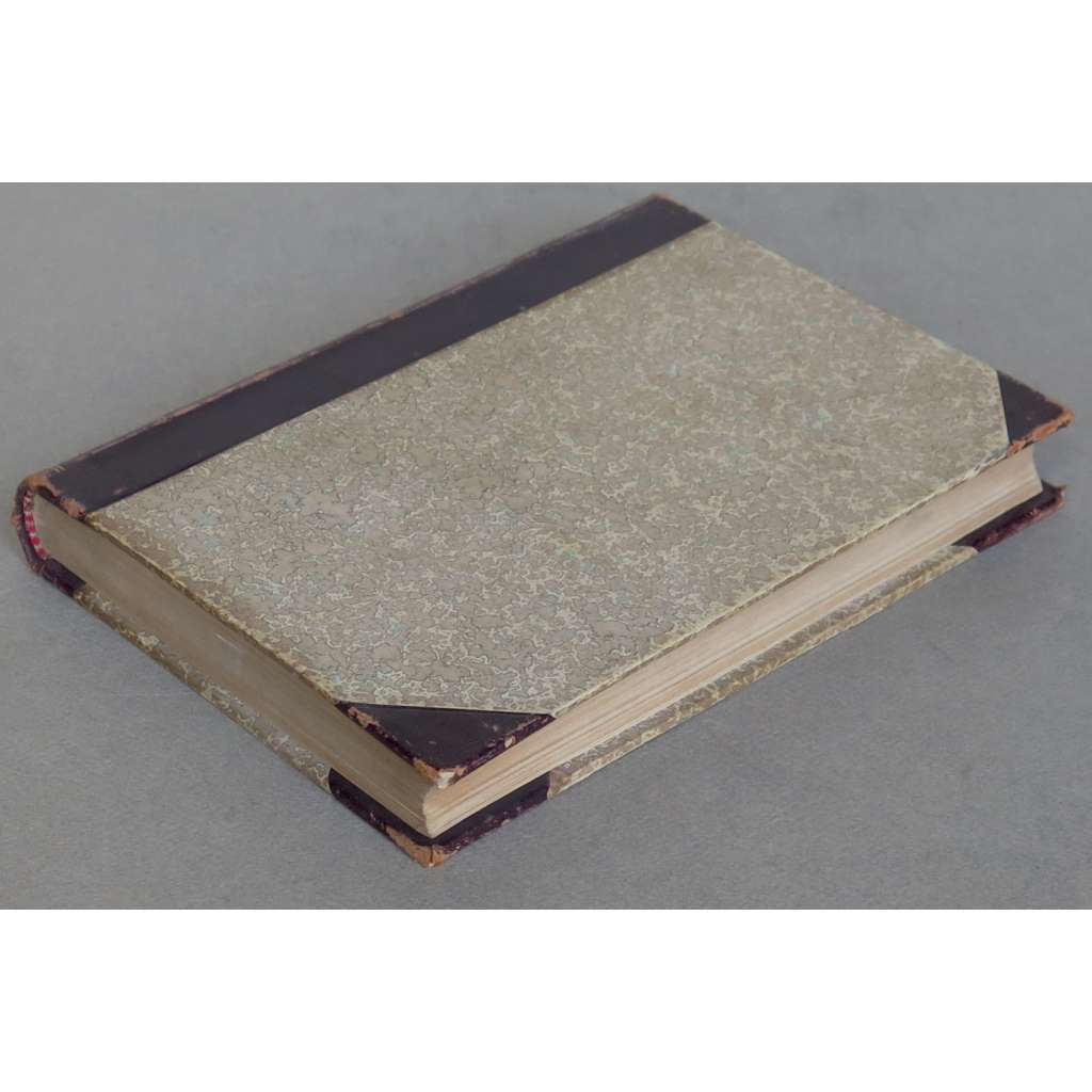 Stav knihy: Dobrý stav; desky opotřebované, kůže na pár místech trochu odřená, na předsádkách a cca 10 stranách jsou žluté skvrnky od stáří, roh přední předsádky a titulní strany ohmataný.