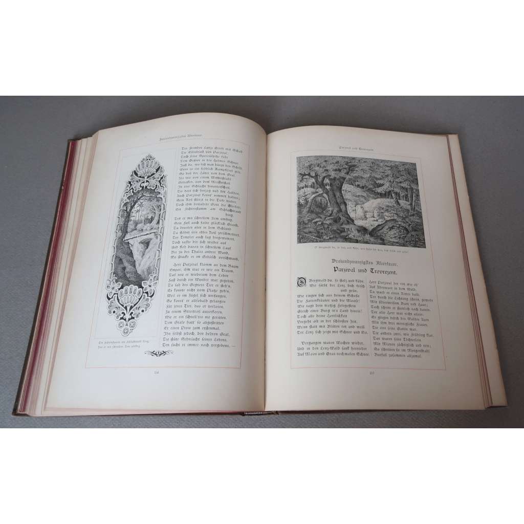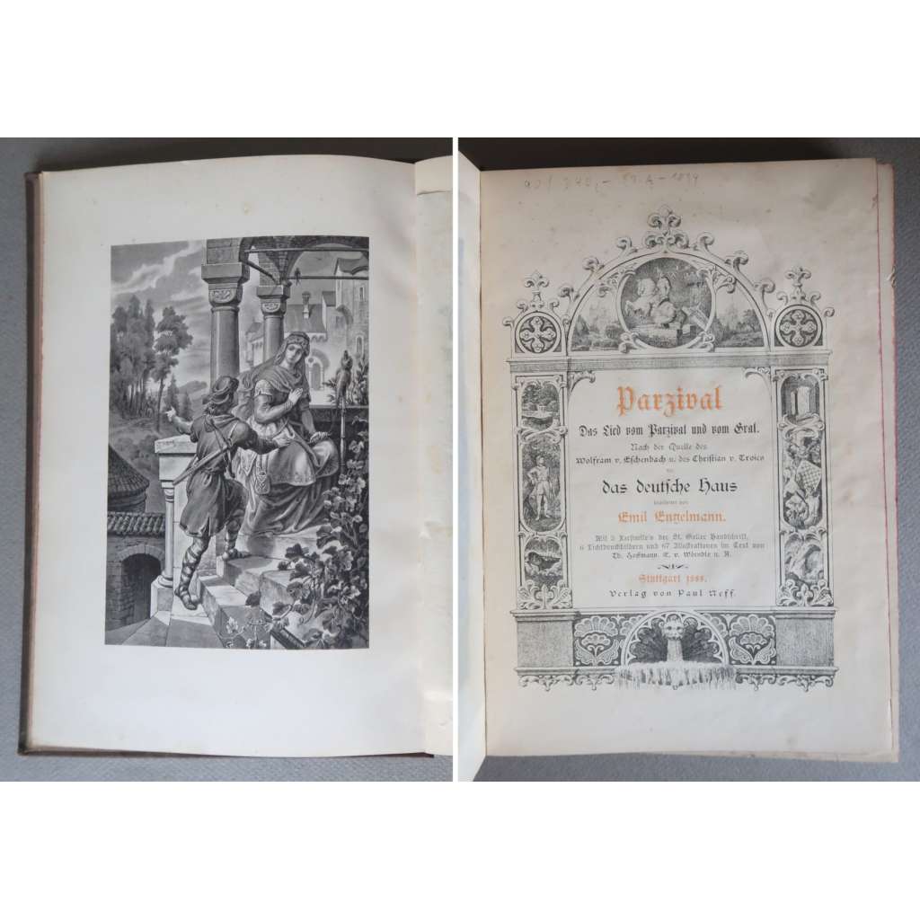 Původní celoplátěná vazba s bohatou černo - šedo- zlatou ražbou na předních deskách a hřbetu, slepá ražba na zadní straně desek, červená ořízka, frontispis, 244 stran s množstvím černobílých ilustrací a 5 faksimilí středověkých rukopisů vzadu v příloze, 4° (19 x 26 cm).