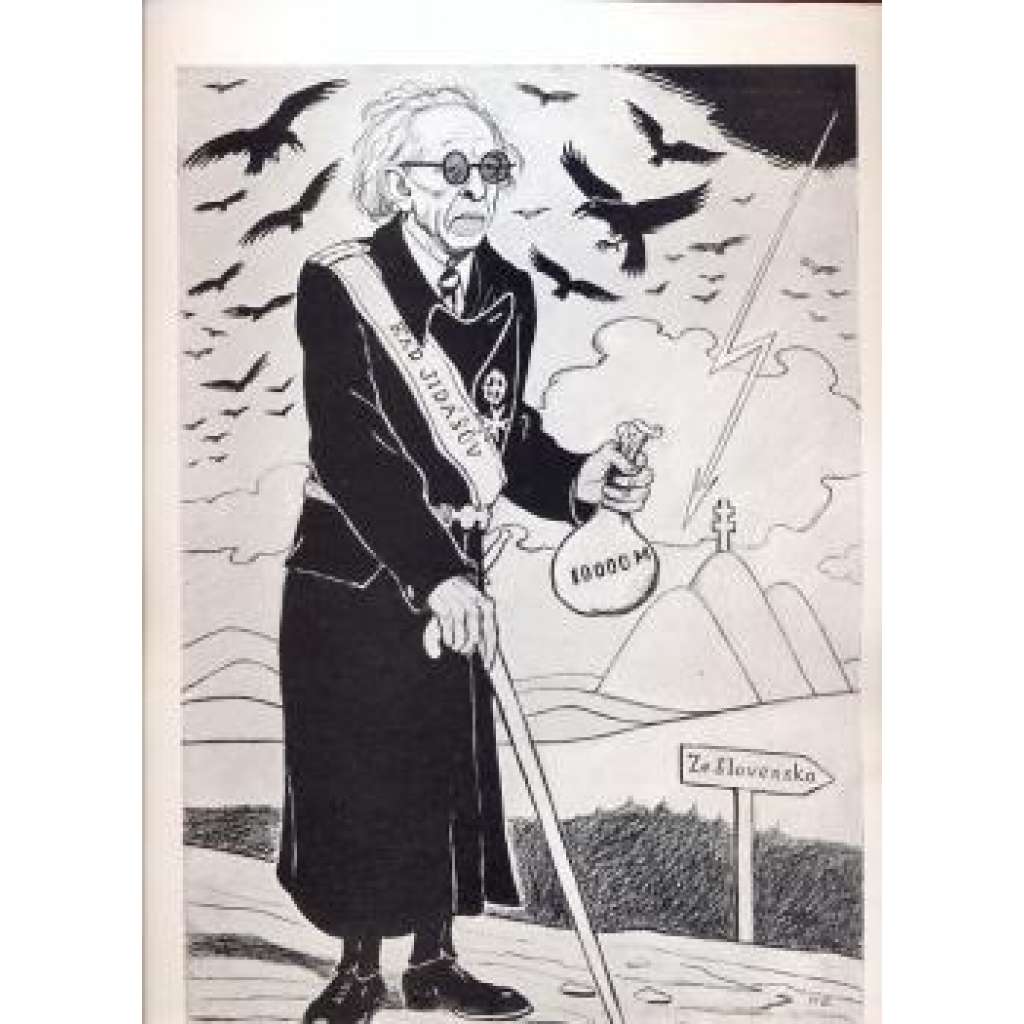 12 politických karikatur malíře H. Bohmana. Vydal M. Hrádek, Nymburk 1945.