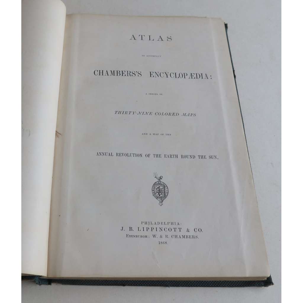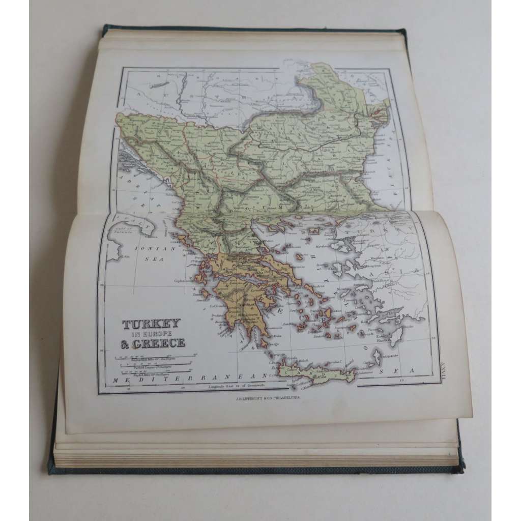 Vydání: Philadelphia - Edinburgh: J. B. Lippincott & Co. - W. & R. Chambers 1868, pův. celoplátěná vazba s titulem na hřbetu, [v] stran+40 map, 4° (18 x 26,5 cm)