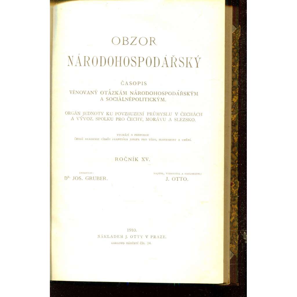 Obzor národohospodářský, ročník XV./1910. Časopis věnovaný otázkám národohospodářským a sociálněpolitickým