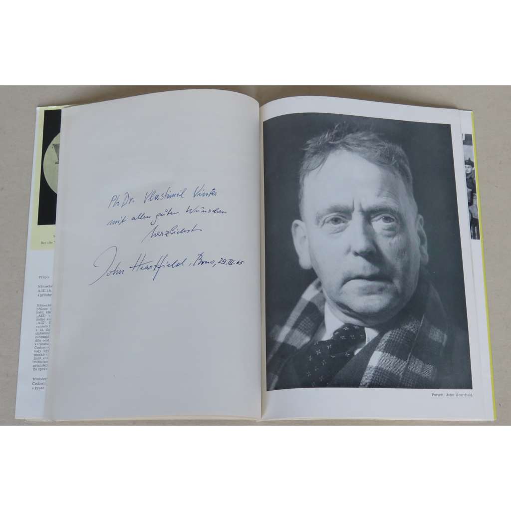 Na jedné ze stran je Heartfieldovo podepsané věnování českému památkáři a univerzitnímu učiteli Vlastimilu Vinterovi (1921–2011); datováno 29. 3. 1965.