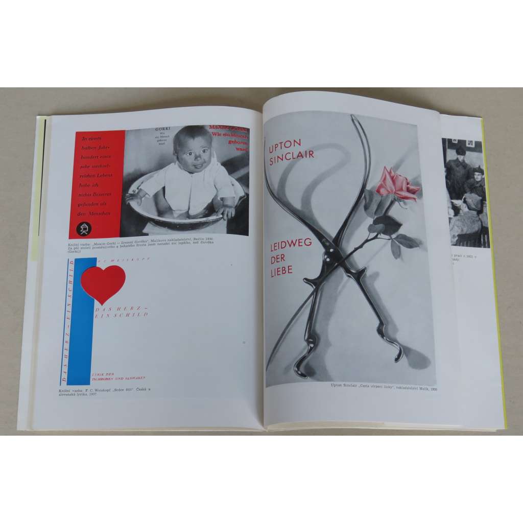 Zřídka se vyskytující katalog Heartfieldovy výstavy fotomontáží, která se roku 1964 konala v Paláci Kinských v Praze jako vzpomínková výstava na mezinárodní výstavu karikatur ve Spolku umělců Mánes, Praha 1934. Katalog obsahuje delší esej Adolfa Hoffmeistera a další texty, po nich následuje obrazová příloha o 32 stranách; několik reprodukcí je barevných.