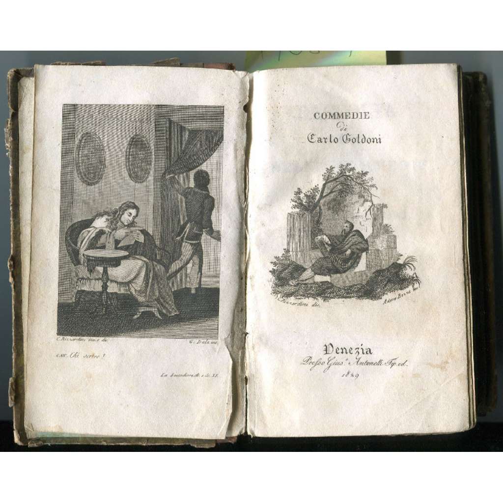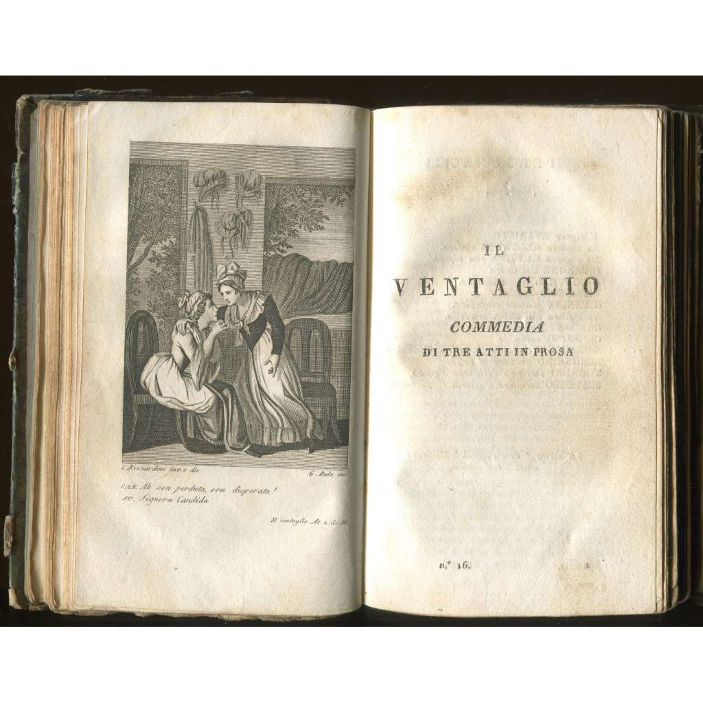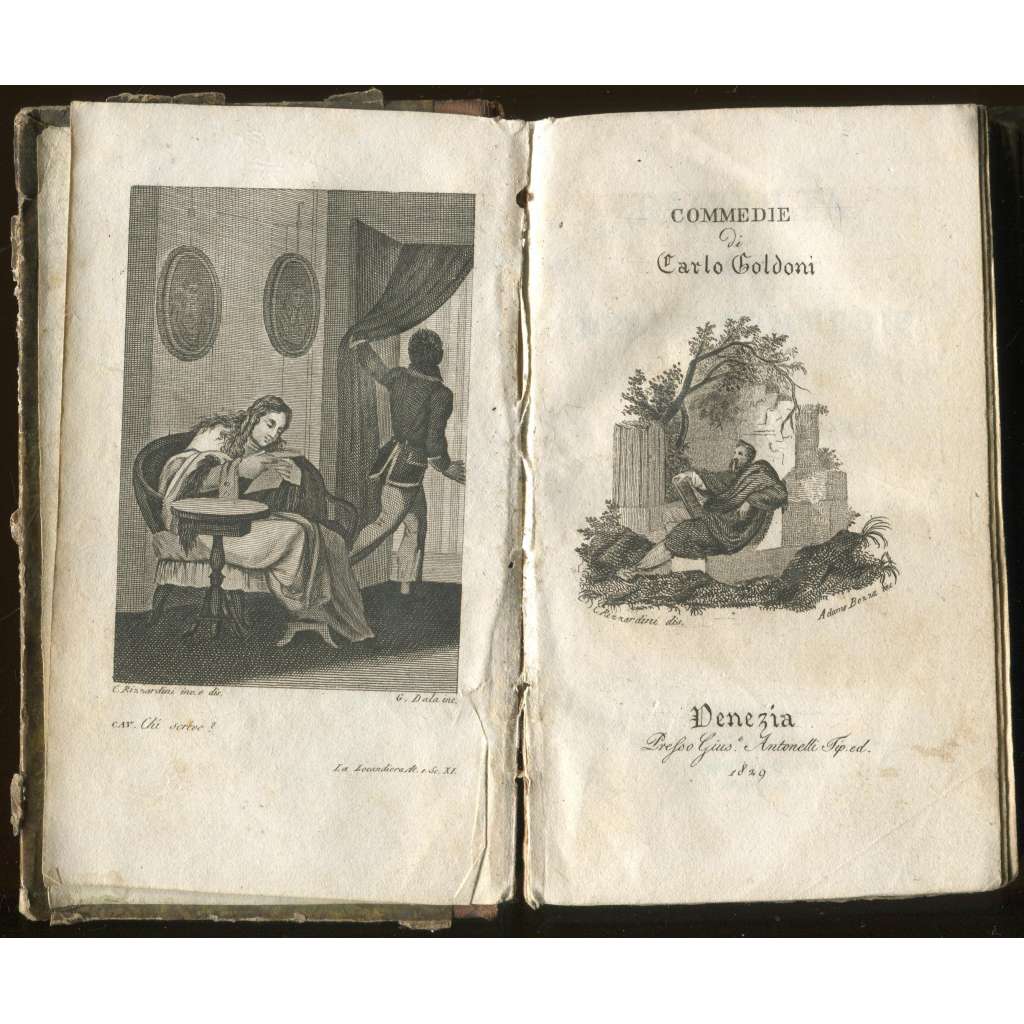 La Locandiera; Il Ventaglio; Il vero Amico; L'Avventuriere Onorato [= Raccolta complèta delle Commedie; tomo VIII e IX, Nos. 15-18] [staré tisky, vazba kůže, mědiryty, italština, dramatika]