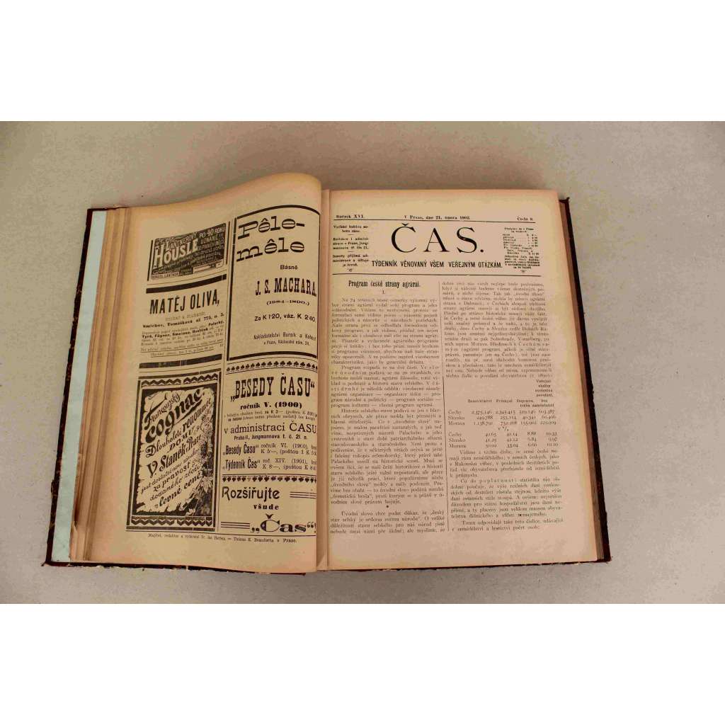 Čas. List věnovaný veřejným otázkám 1903, ročník XVI [noviny, deník realistů - Herben, Masaryk, Cyril Dušek ad., mj. Krise v Maroku, Persekuce Čechů v Teplicích, Mladočeši, Výstava v Třebíči, Život český na Liberecku)