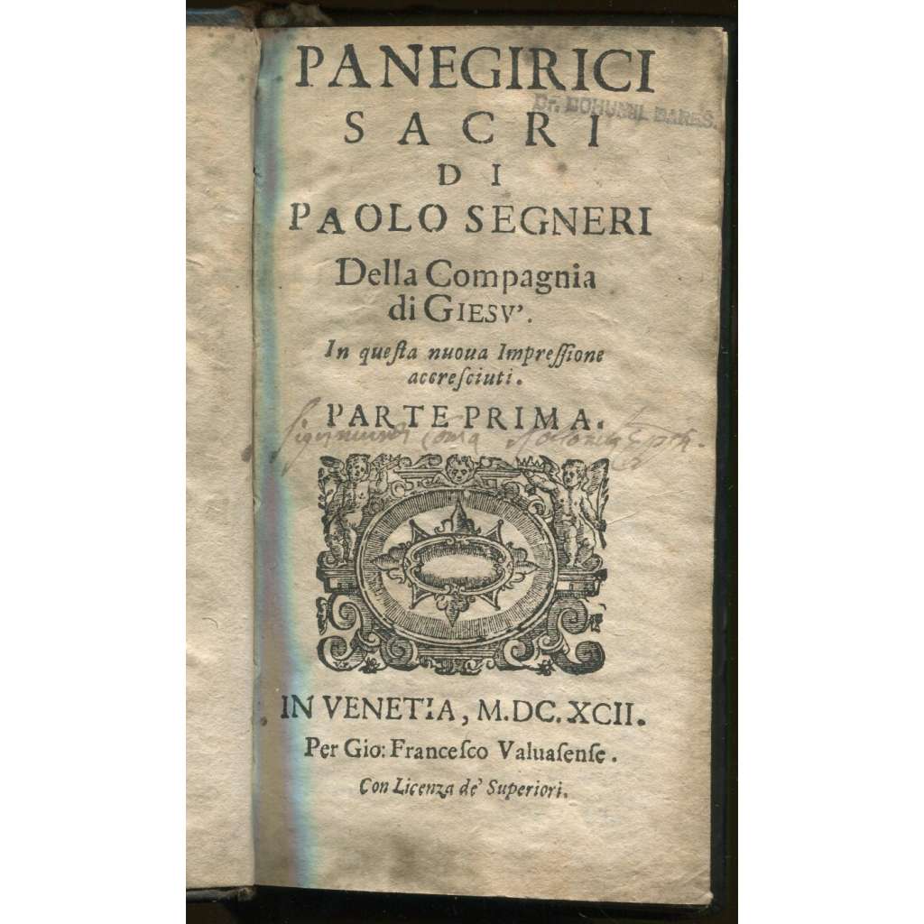 Panegirici sacri di Paolo Segneri, Dalla Compagnia di Giesu'. In questa nuova Impressione accresciuti. Parte prima [e] Parte seconda [náboženství, italsky, staré tisky, vazba kůže]]