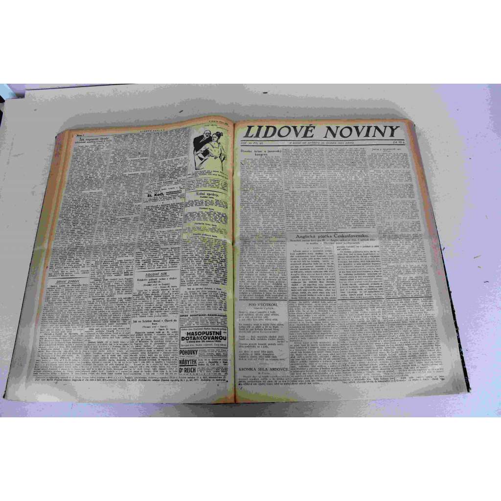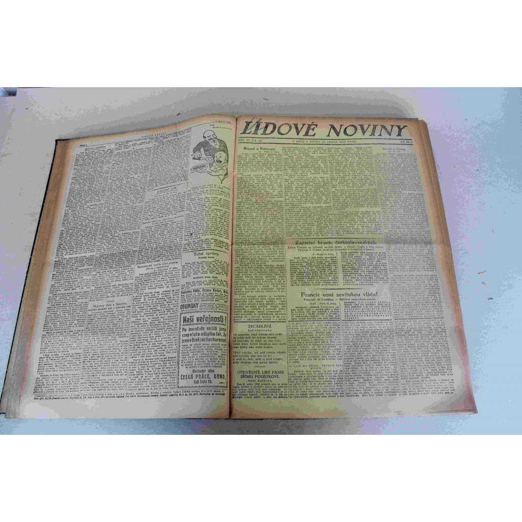 Lidové noviny 1922, roč. 30 (leden-březen) (deník, první republika, mj. K. Čapek - Továrna na absolutno, Zestátnění Moravského Krasu, Maďaři a Němci na Slovensku, Papež zemřel [Benedikt XV.], R. těsnohlídek - Kus žebroty)