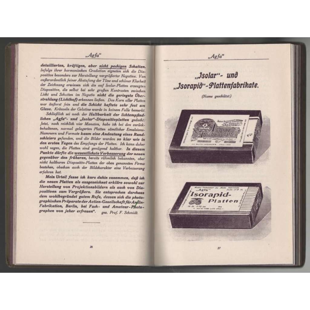 Podtitul: Detail-Niederlage von Agfa-Artikeln bei Bernhard Goldwein, Prag Ferdinadnstrasse 23 neu. Příručka pro fotografy, která obsahuje komplexní rady a nabídku produktů pro fotografování, včetně ceníků