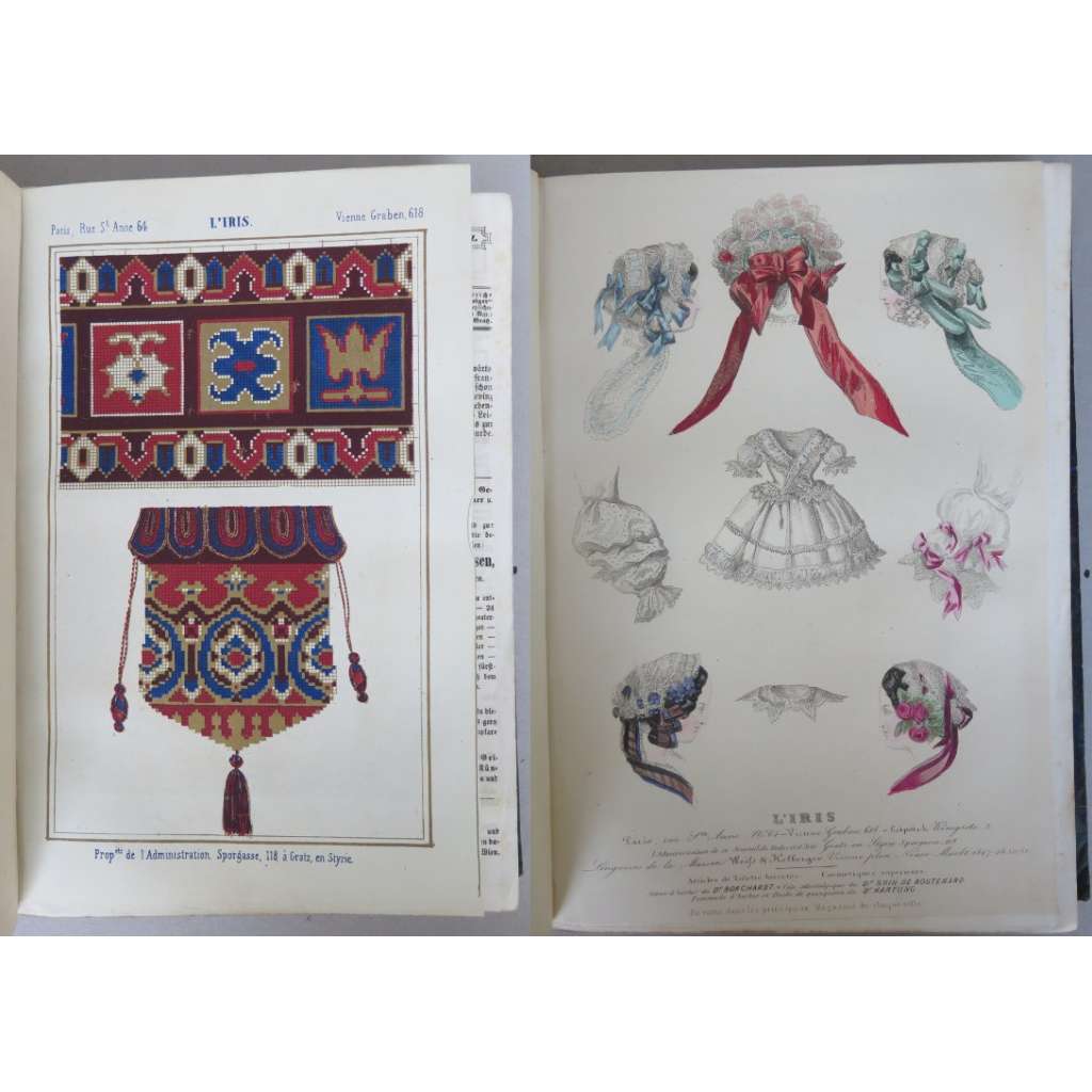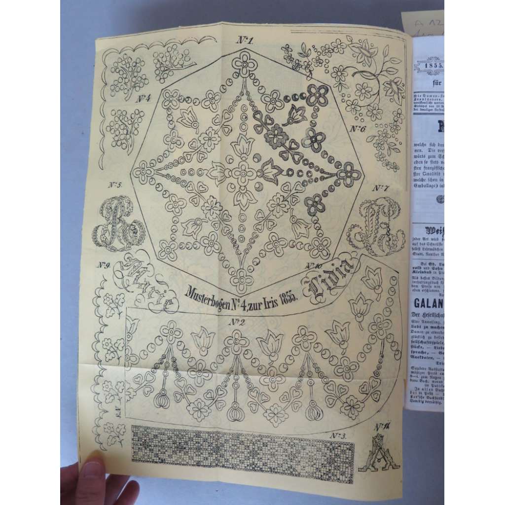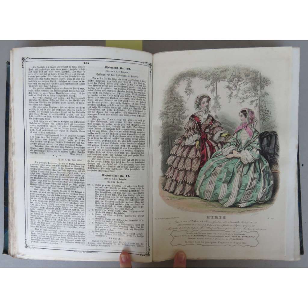 IRIS. Pariser Damen-Zeitung. Moden-, Muster & Kleider-Magazin; VII. Jahrgang 1855 [móda, kolorované litografie, staré tisky]