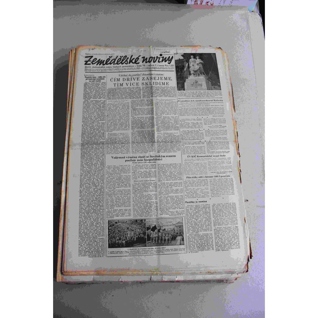 Zemědělské noviny 1951, roč. 7 (deník, komunismus, zemědělství, venkov, mj. Čím dříve zasejeme, tím více sklidíme; odvolání Rudolf Slánský)