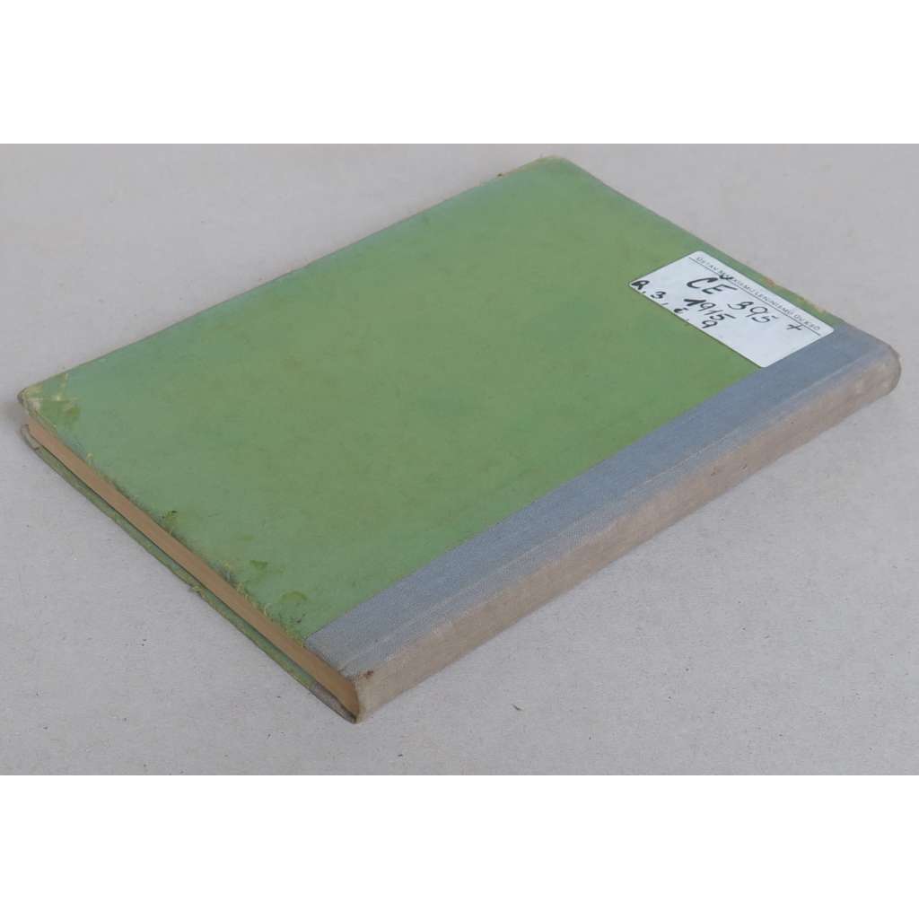 Stav knihy: Dobrý stav; desky opotřebované a naražené, na zadní desce je nalepen štítek, na přední předsádce a některých stranách jsou razítka a signatury, na přední předsádce je nalepena i papírová kapsa, tabule a několik stránek s pár žlutými skvrnkami od stáří.
