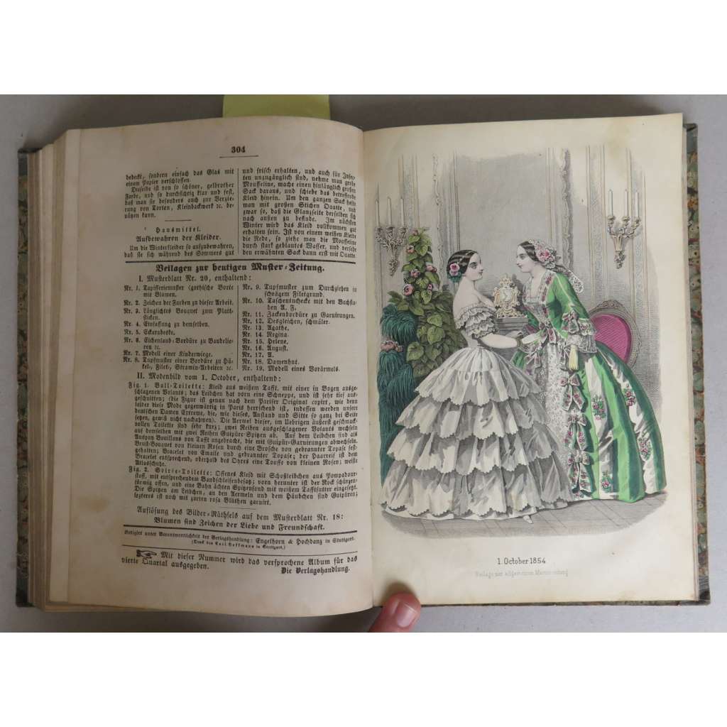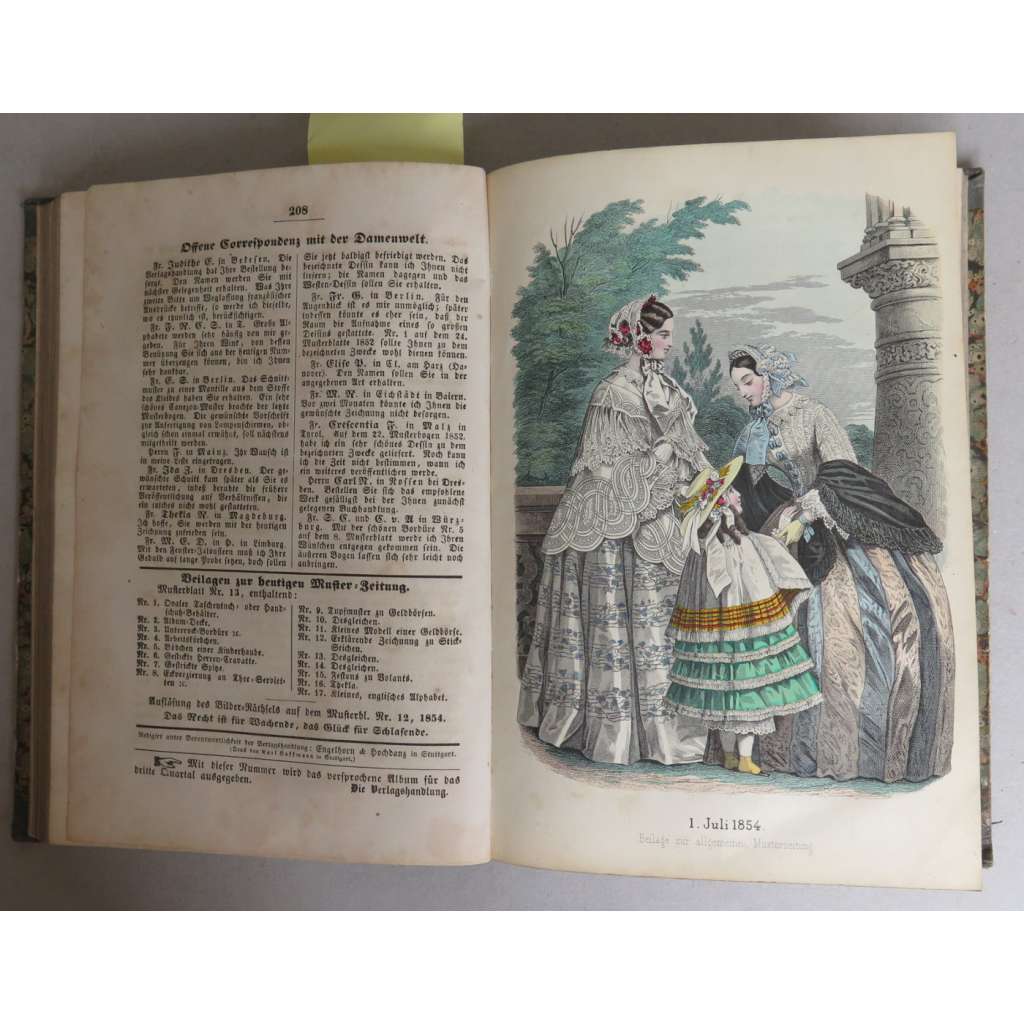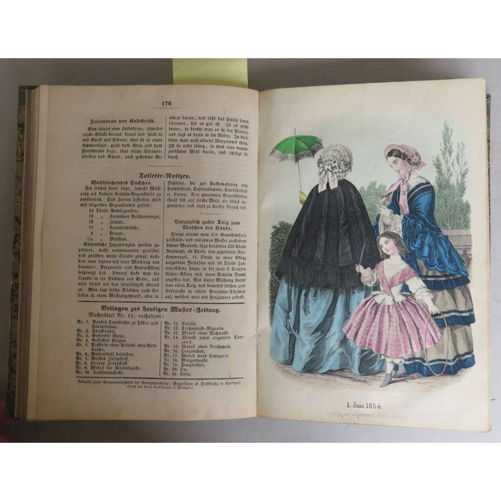 Allgemeine Muster-Zeitung. Album für weibliche Arbeiten und Moden; 1854, elfter Jahrgang [móda, domácí práce, staré tisky, barevné litografie]
