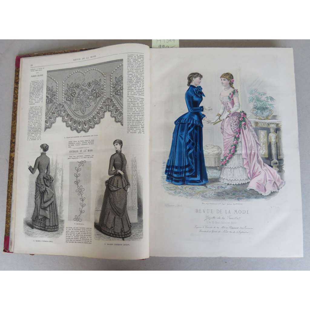 Vydání: Paris 1883, polokožená dobová vazba s dekorativní černou a zlacenou ražbou na hřbetu, mramorovaná ořízka, 416 stran s četnými rytinami, 52 kolorovaných tabulí s módou, 2° (27,5 x 38 cm)