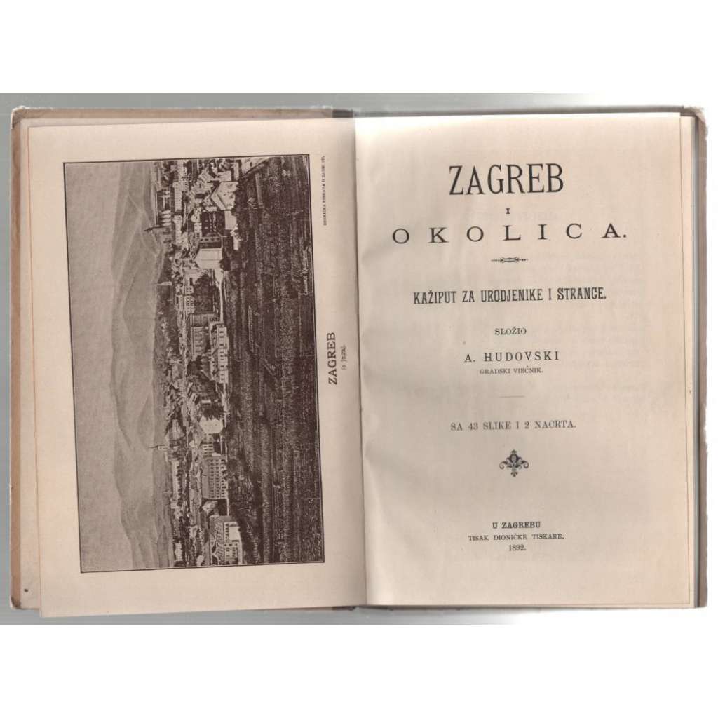Vydání: Zagreb: 1892. Pův. poloplátěná vazba s titulem na přední desce a obrázkem na deskách, 96 stran s četnými černobílými obr. a mapou, 8° (13 x 19 cm)