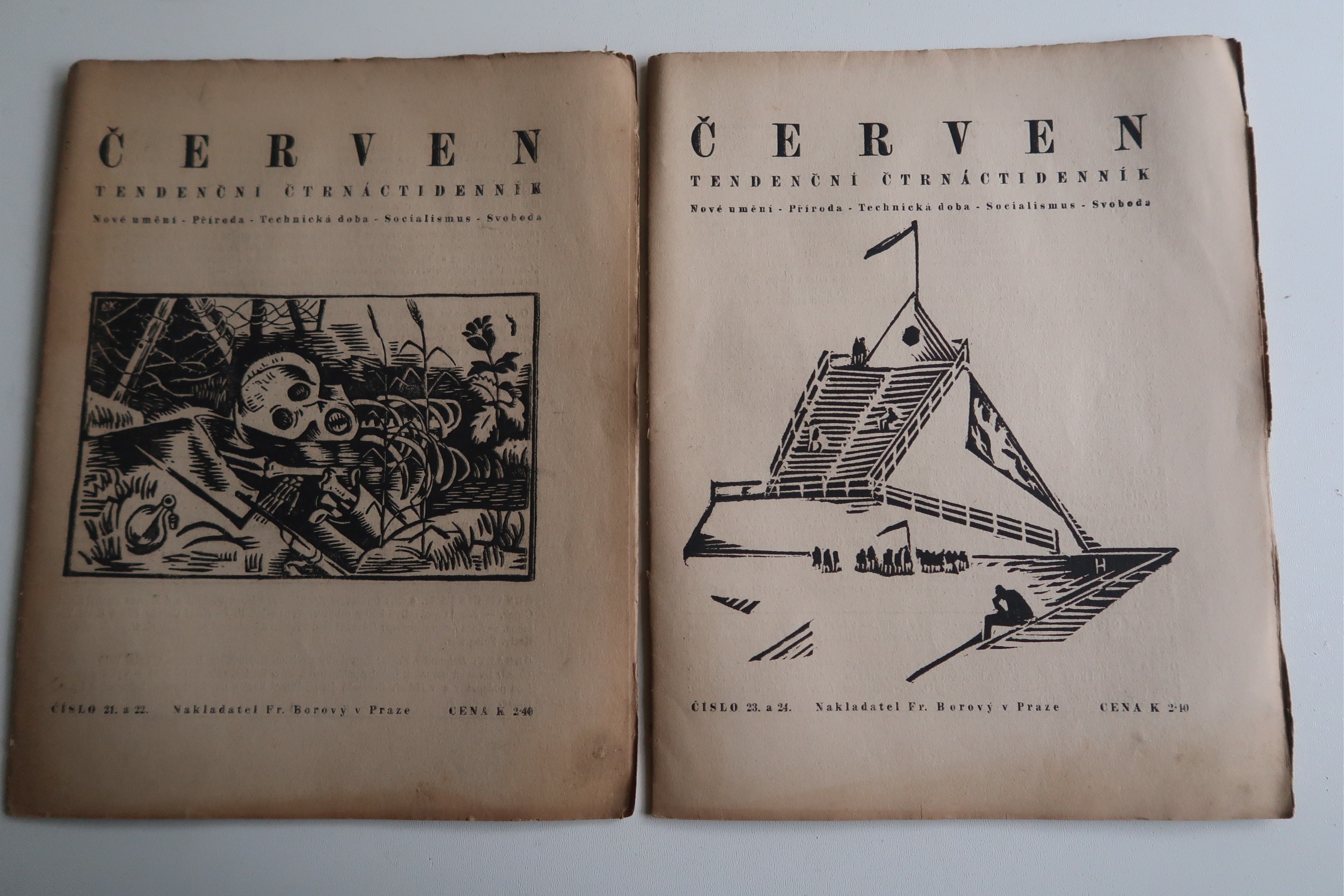 Časopis Červen, roč. I., (1918/1919), čísla1-7 a 13-24. Tedy nekompletní. Volné sešity s obálkami.