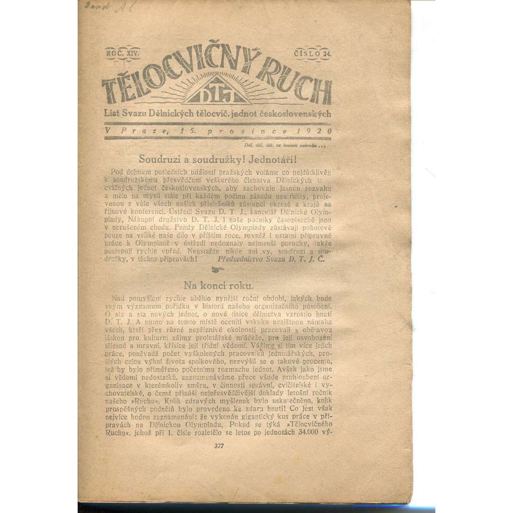 Obálka mírně pomačkaná a zašpiněná. Stav dobrý.