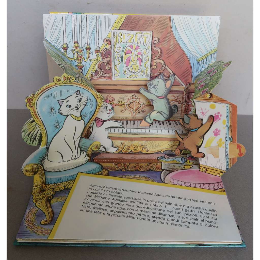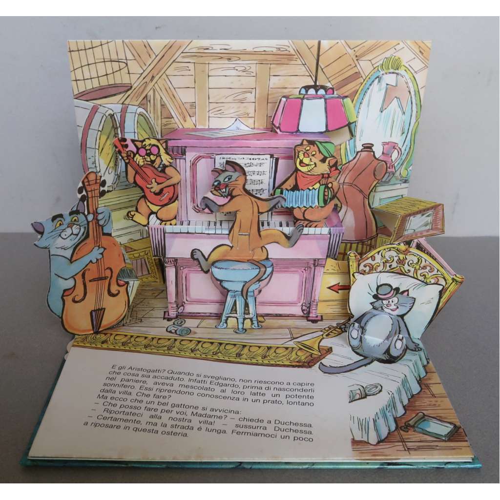 Gli Aristogatti. IX edizione (aprile 1974) [Aristokočky, The Aristocats, pop-up kniha, prostorová publikace, bibliofilie, Vojtěch Kubašta - autorský výtisk]