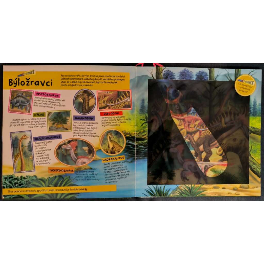 Schovat dinosaura není moc snadné, ale pomocí neobyčejného světlometu jistě najdeš všechny pravěké tvory, kteří se v této knížce ukrývají ,a potom je napočítáš.