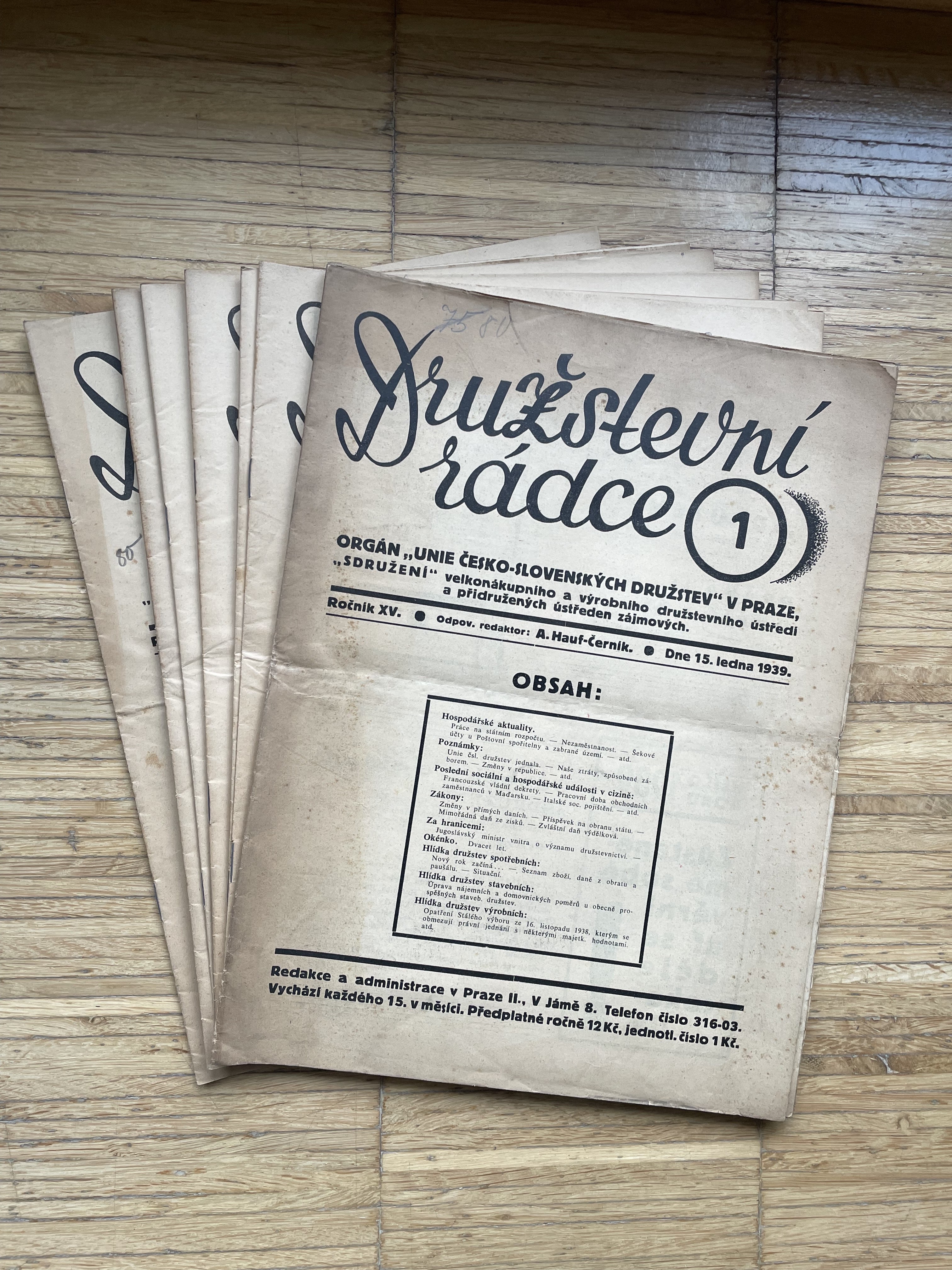 Přehnuté složky, každé číslo 12 stran, rozměry: 23 x 31 cm.
