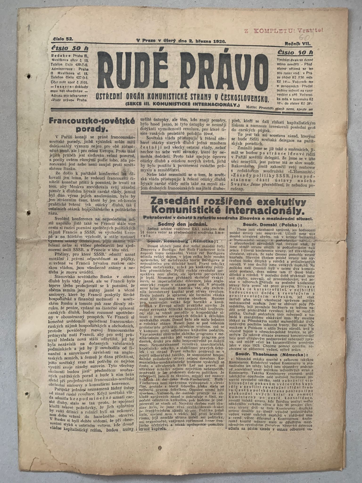 Staré noviny, volné složky, formát A3, přeloženo na A4. Stran 8