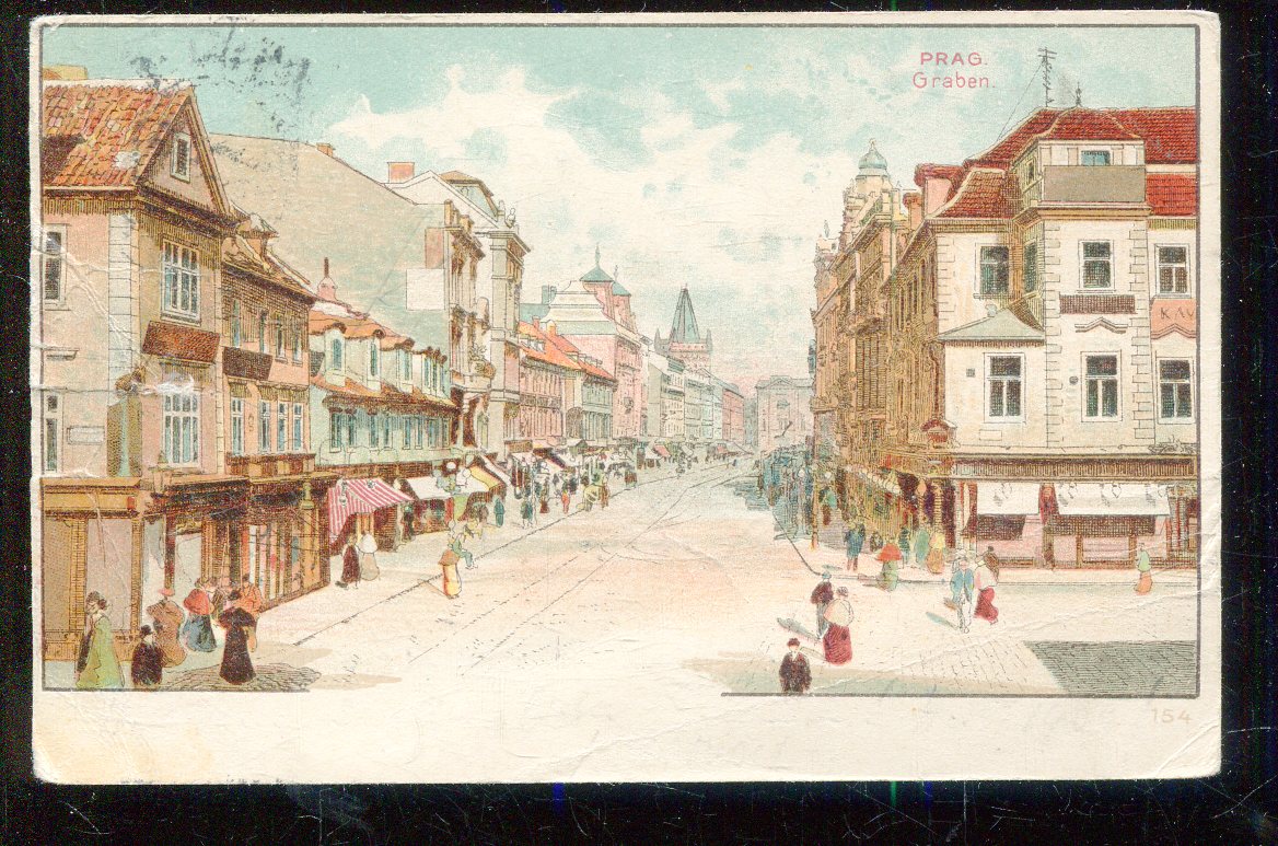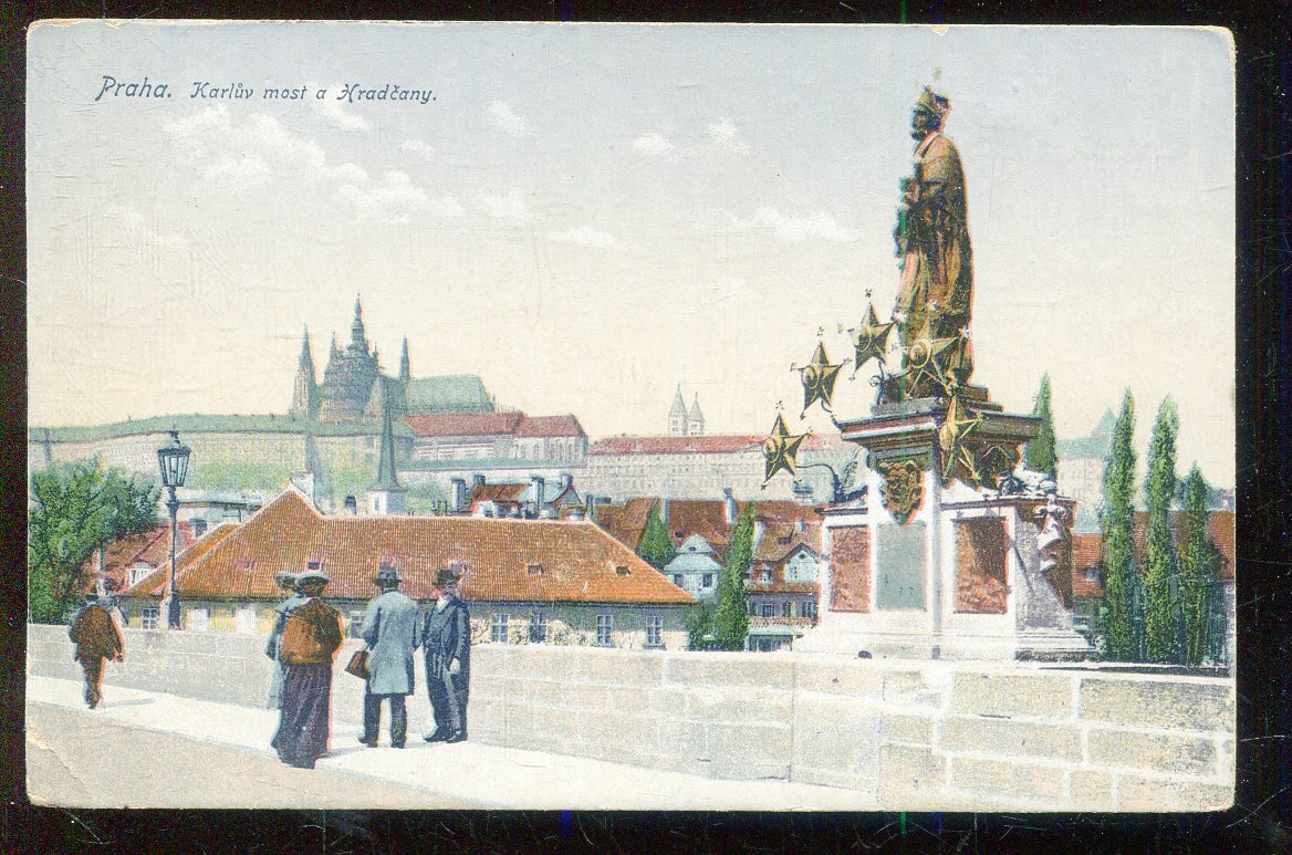 Stará pohlednice, prošlá se zn. - ta částečně stržena (malý formát, cca 9 x 14 cm ).