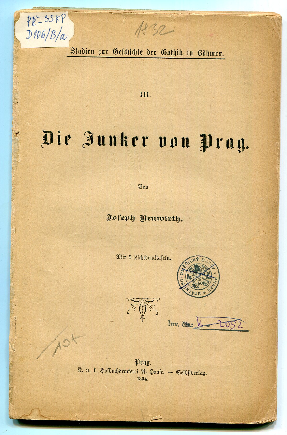Prag: K. u. K. Hofbuchdruckerei A. Haase – Selbstverlag 1894. Mit 5 Lichtdrucktafeln. Aus dem 33. Jahrgange der „Mitteilungen des Vereines für Geschichte der Deutschen in Böhmen“ besonders abgedruckt.