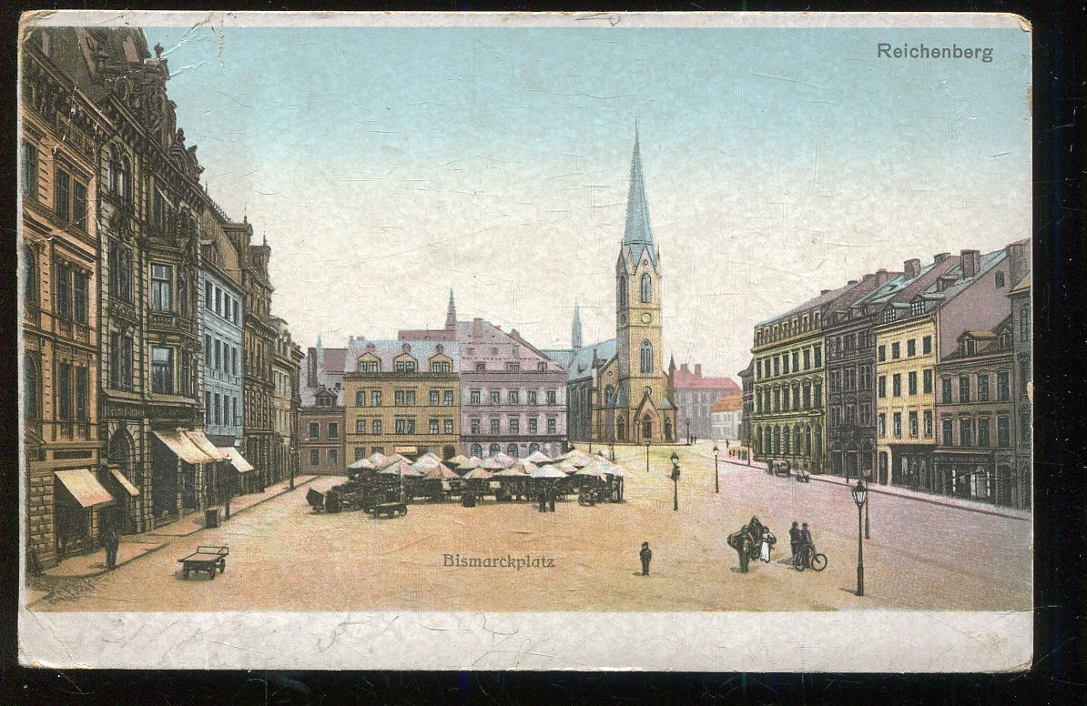 Stará pohlednice, prošlá se zn. (malý formát, cca 9 x 14 cm ).