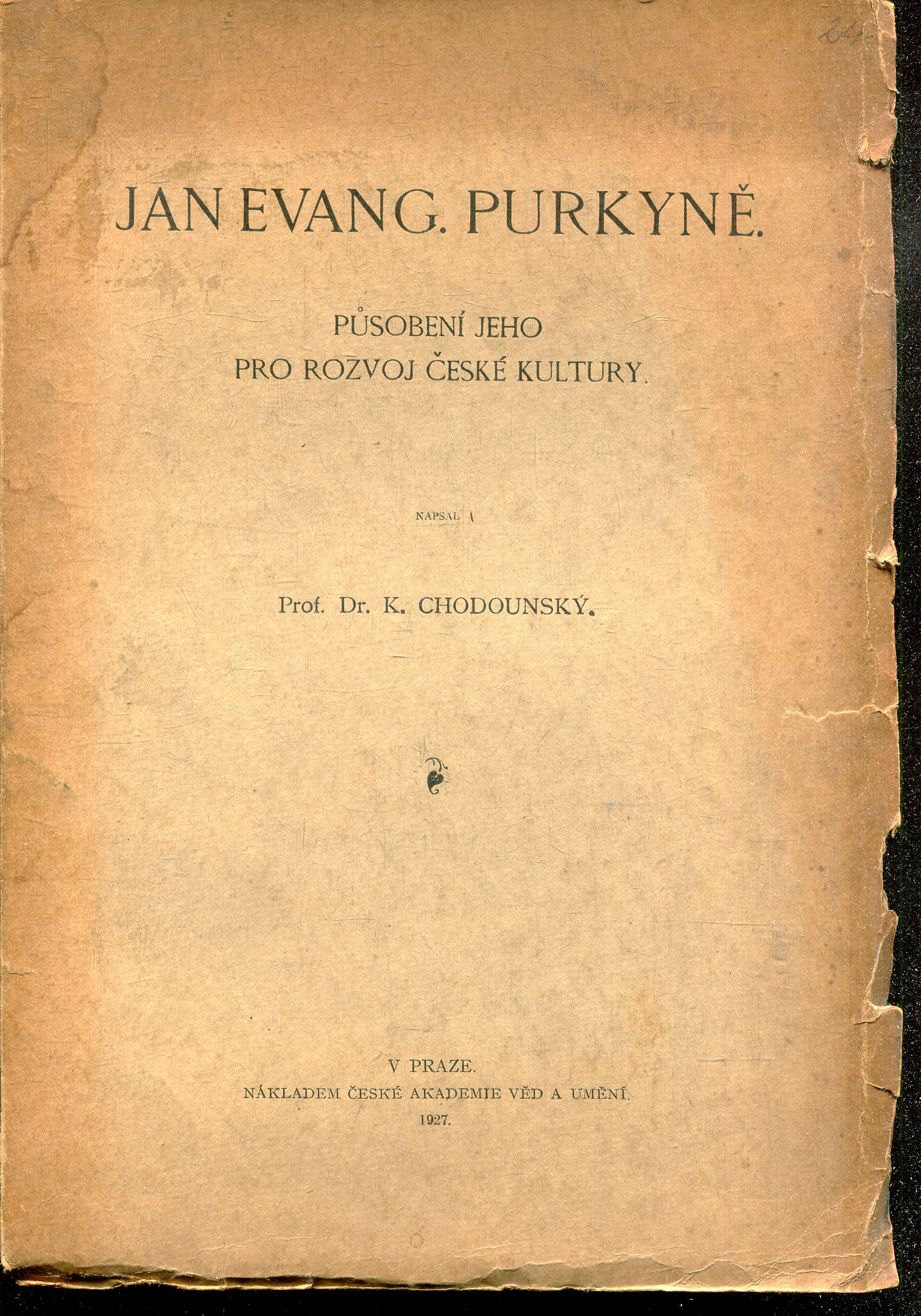 Obálka po okrajích a ve hřbetě natržena, stránky nerozřezány a po okrajích otřepeny. Stav dobrý.