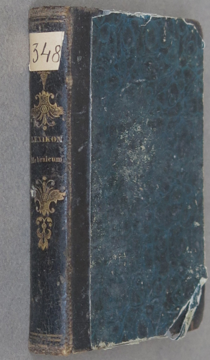 Dobrý stav; desky mírně opotřebované, s několika skvrnami, ořízka zažloutlá, na patitulu je podpis majitele (1906) a pár větších skvrn, pár vybledlých skvrn je i na několika dalších stránkách.